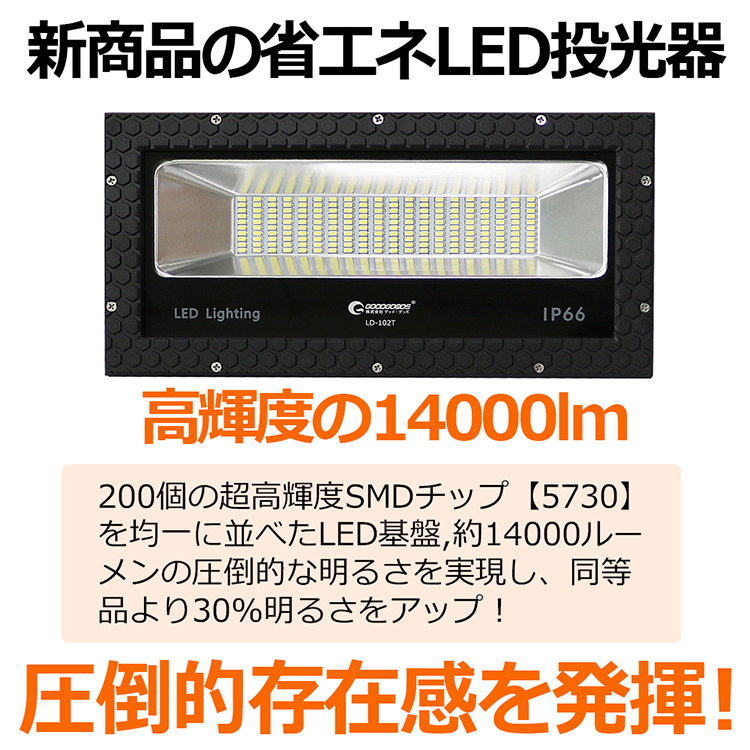 LED投光器 100W 1000W相当 14000LM IP66 防水 防塵 高輝度 広角配光 薄型 スポットライト 屋外 夜間作業 一年保証 LD-102T