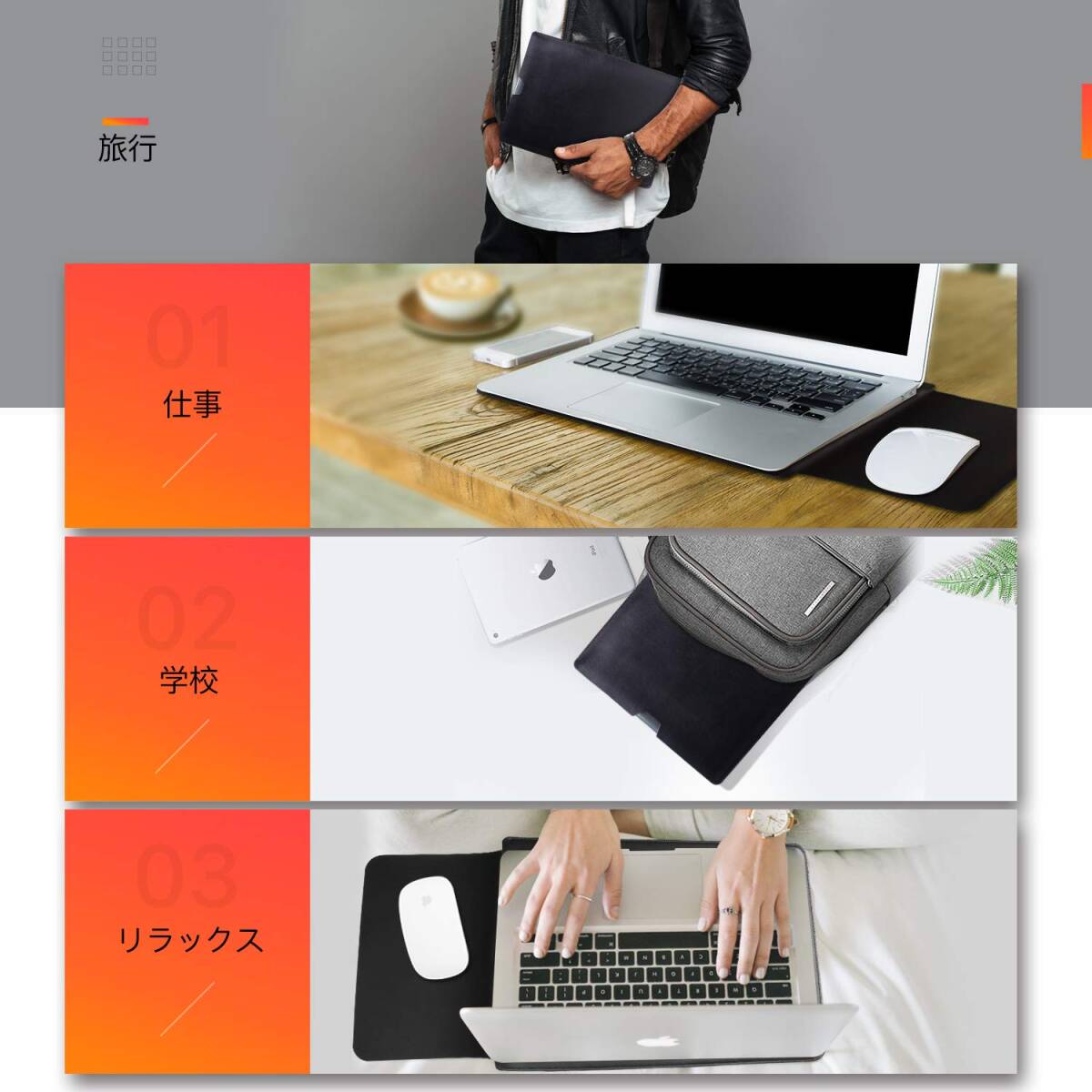 実用的なデザイン:このケースはマウスパッドとして使用できて、MacBookを使用している時は、マウスパッドとして使れるので非常に便利です