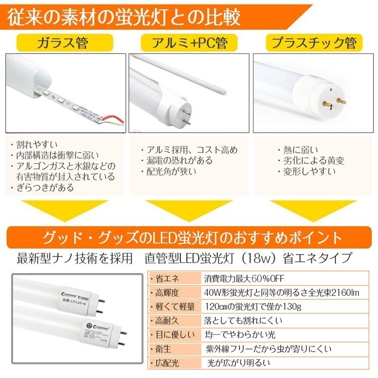 | 品番 | LD120-N(GOODGOODS正規品) | 消費電力 | 18W(40W形) |