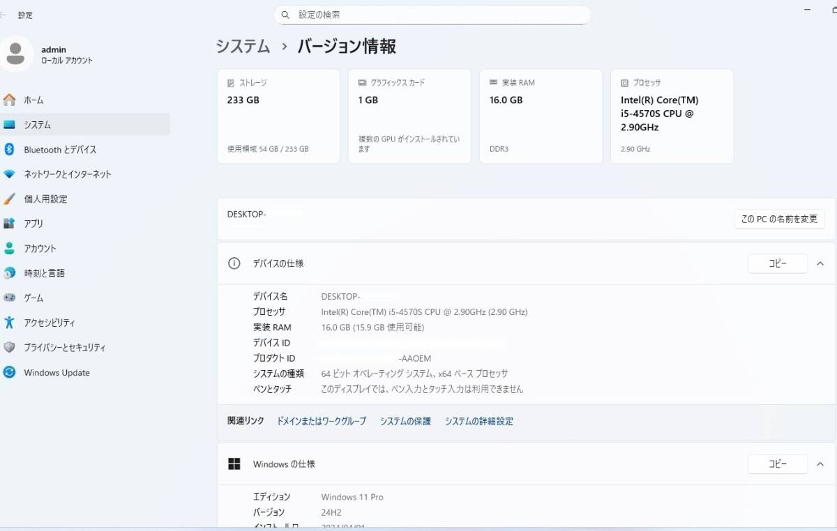●CPU INTEL CORE i5-4570S 2.90GHz 4コア4スレッド