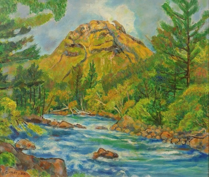洋画家。一水会常任委員。享年89。明治27(1894)年4月19日、島根県出雲市に生まれ、大正7年東京美術学校図画師範科を卒業する。同14年より2年間フランスに留学、昭和6年にもフランスに渡り1年間滞在。翌7年帰国して「騎士と二人の女」「馬と女」を第19回二科展に出品し初入選する。日展にも出品、数々の入選暦あり。一貫して京都、奈良の古仏をモチーフとし、背景に神像や飛天を描きこんで仏世界を表わしている。水墨画、書もかき、大湖とも号した。