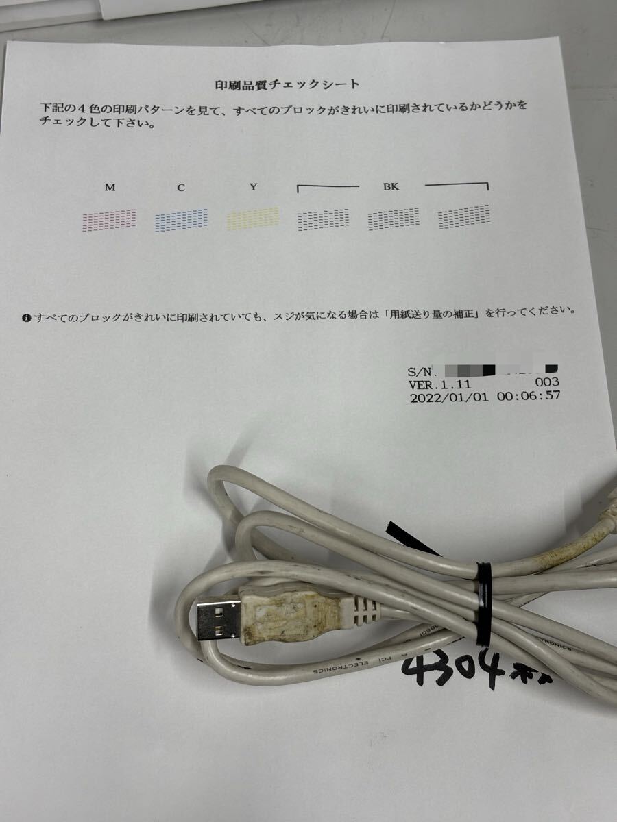 ノズルチェック、インク残量は写真にてご確認ください。ブラックのインク残量が少なかったため、プリントヘッドはクリーニングされませんでした。