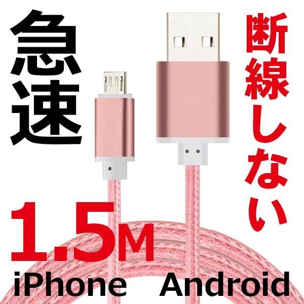 iPhone micro USBケーブル 高耐久ナイロン素材 急速充電 高速データ転送 1.5m 充電ケーブル Xperia / Nexus / Galaxy / AQUOS / Android 多機種対応