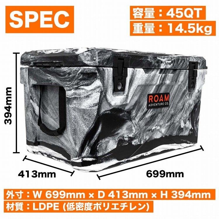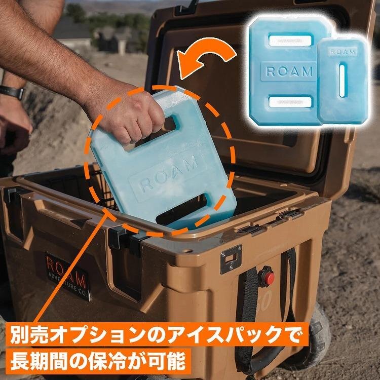 | 商品説明 | ■特徴 ROAM ラギッドクーラーは、ケース内の氷を最長で8日間キープすることができる高性能クーラーです。 20から最大75QTまで豊富なサイズをラインナップ。 なお50、75QTの2サイズにはラバーホイールを搭載モデルを設定、活躍するシーンは多岐に及びます。 実践的なスタッフたちによる製品開発による細やかなアイデアが満載で、機能性のみならず、他のROAM製ギアと統一された デザイン性やカラーラインナップは、アウトドアライフをより充実したものにするでしょう。 ■装備と機能 ●後部座席にも積載可能で機動性抜群なコンパクトモデル ●シーンや好みに応じて選択可能なアウトドアムードを演出する、全4色ラインナップ ●確実な保温性を確保する高性能シール ●指一本で操作可能な開閉ラッチ ●耐腐食性に優れたステンレス製ヒンジ ●ラバーパッド付きアルミ製キャリングハンドル ●縦横いずれの方向からでも手持ち可能なグリップポイント ●車載時に便利なタイダウンベルト用ループ ●保安面も安心な施錠可能蓋。着脱式のケーブルロックブラケット付属 ●本体埋め込みタイプのステンレス製栓抜き ●融けた氷の排出やメンテナンスに便利な開閉式ドレンホール(内部減圧バルブも搭載) ■仕様 カラー:オドグリーン 容量:45クォート(約42.6リットル) 外寸:699mm x 413mm x 394mm 重量:10.9kg 素材:LDPE 付属品:バスケット / まな板(仕切り) / ケーブルロックブラケット 重量:7.2kg | |