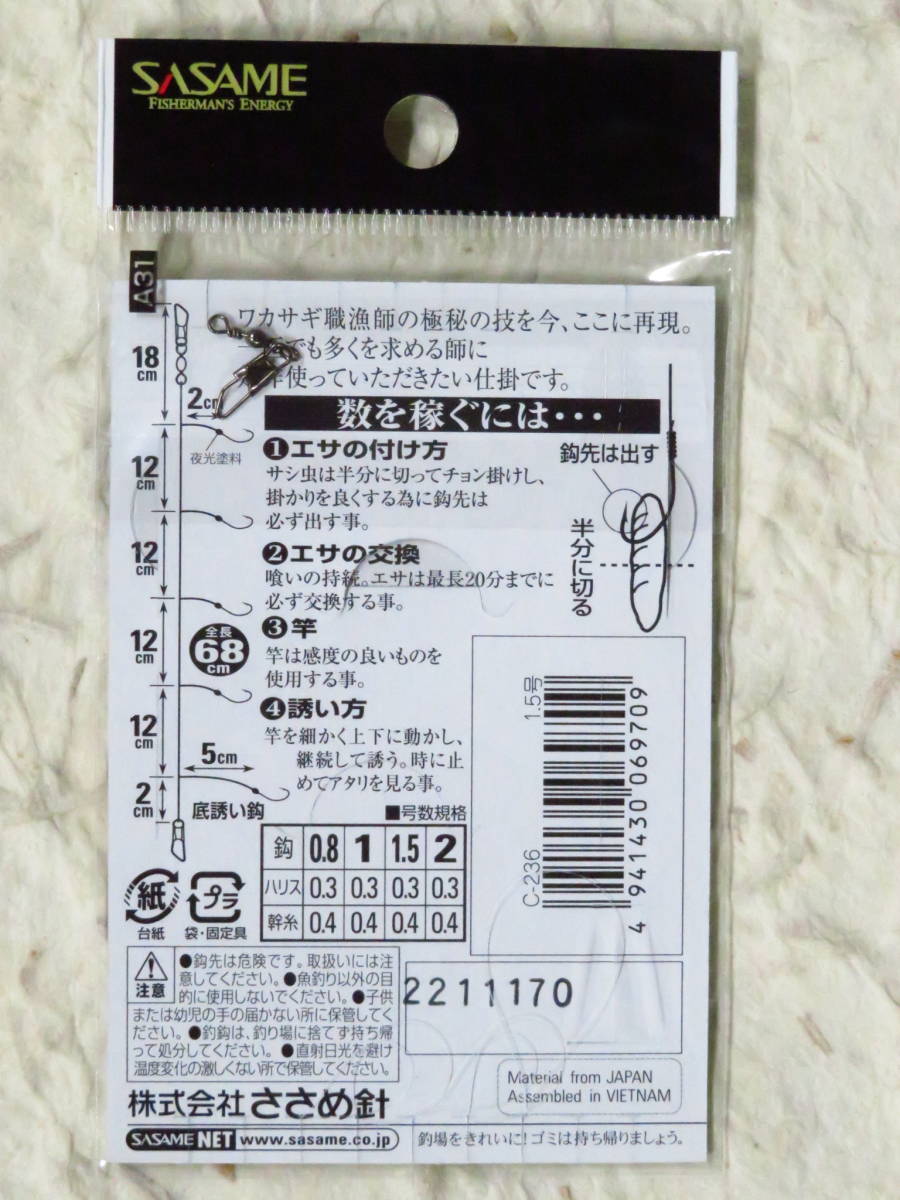 ささめ針 ワカサギ 山中湖 1.5号×10個セット C-236 新品 秋田狐 5本針