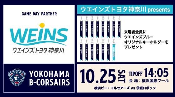 ・10月25日(土) 「ウエインズトヨタ神奈川 presents 横浜ビー・コルセアーズ vs 茨城ロボッツ」来場者特典