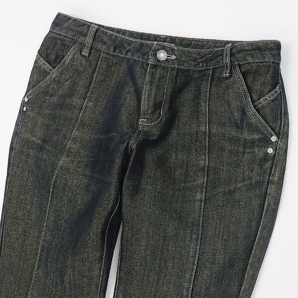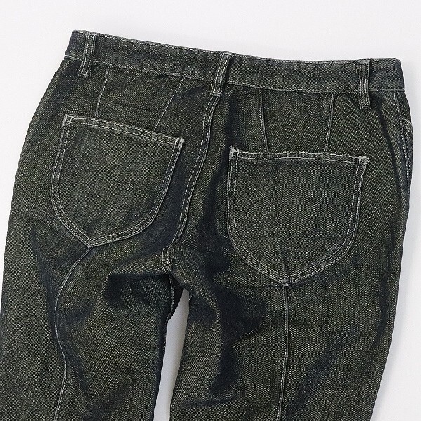 | 実寸サイズ | ウエスト・・・約79cm 股上・・・・・約22cm 股下・・・・・約77.5cm 太腿幅・・・約29.5cm 裾幅・・・・・約21cm 総丈(トップから裾の外側直線)・・・約98cm ※多少の誤差はご了承下さい。 |