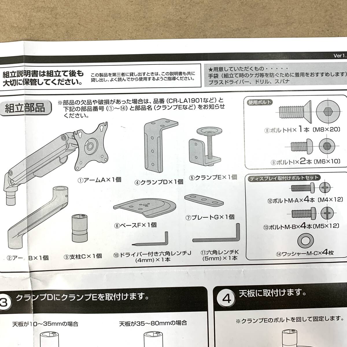 【美品】 サンワサプライ 水平垂直液晶モニターアーム CR-LA1901