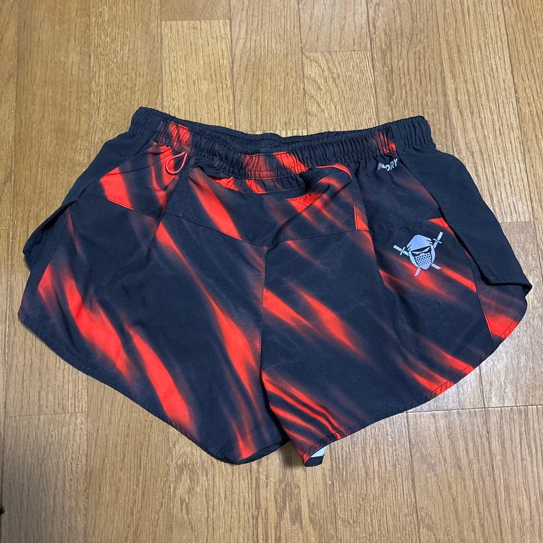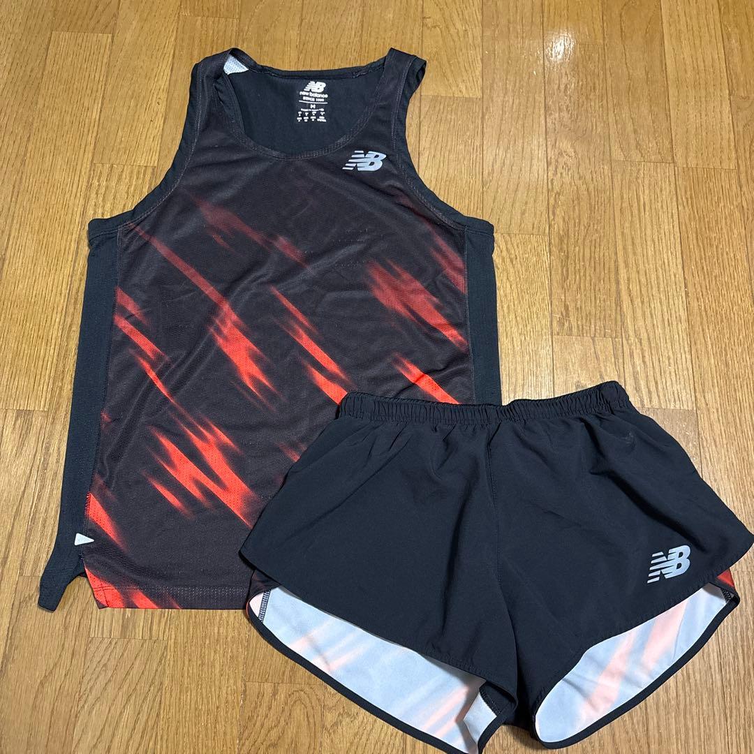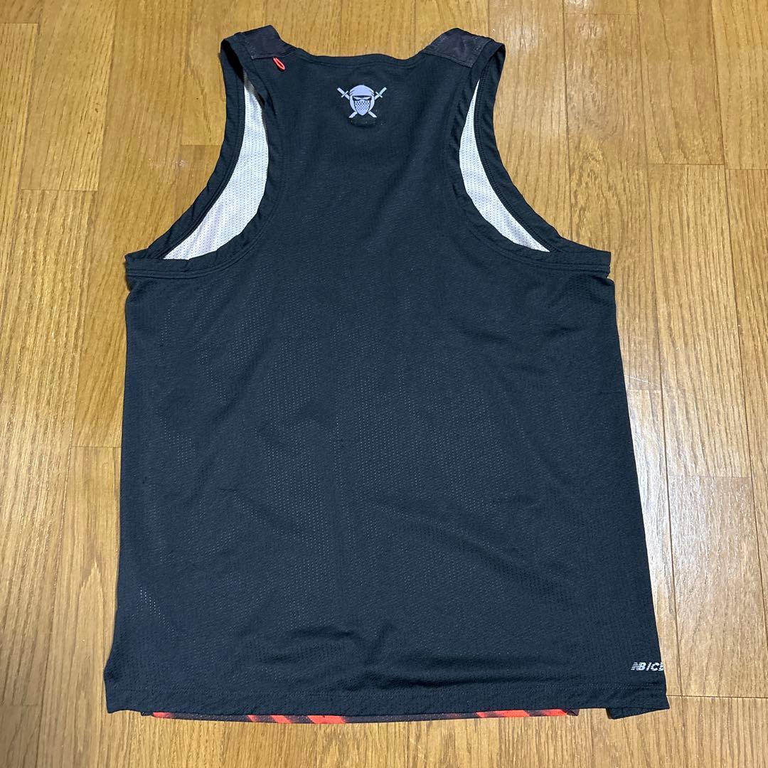 軽量メッシュ素材のタンクトップとショートパンツのセット、背面にスカルプリントが特徴。