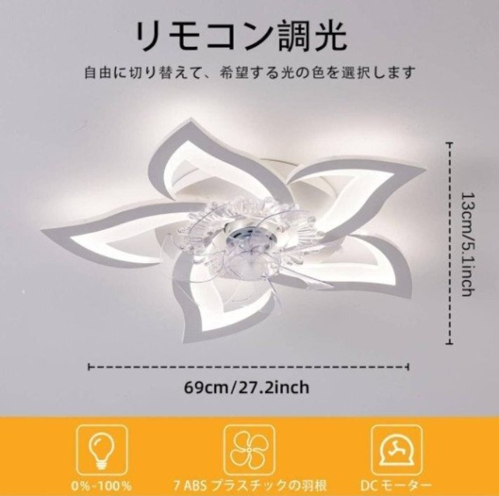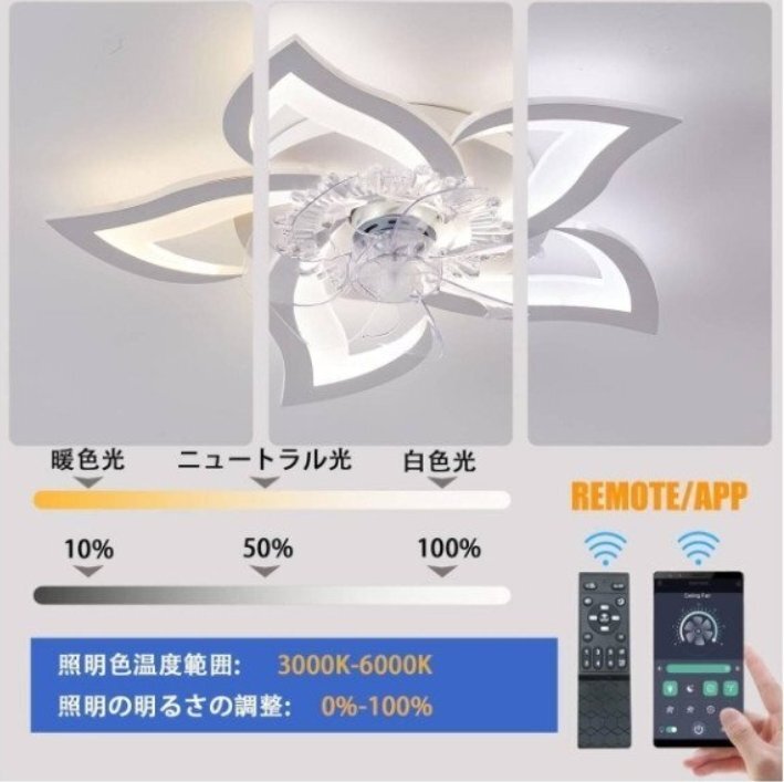 シーリングファンライト LED 花柄 調光調色 リモコン 花形 dcモーター APP制御 6畳-12畳 照明器具 シーリングライト 扇風機 脱衣所 省エネ
