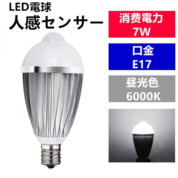 LED電球 人感センサー E17口金 昼光色 7W 40W 相当 センサーライト 1個セット