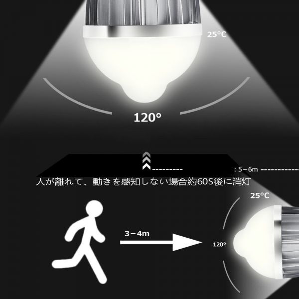 点灯時間: 約60s(人が離れて、動きを感知しない場合約60s後に消灯)