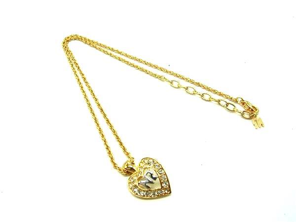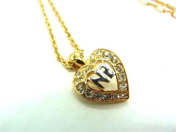 ■美品■ NINA RICCI ニナリッチ ラインストーン ハート ネックレス ペンダント アクセサリー レディース ゴールド系 DY0806