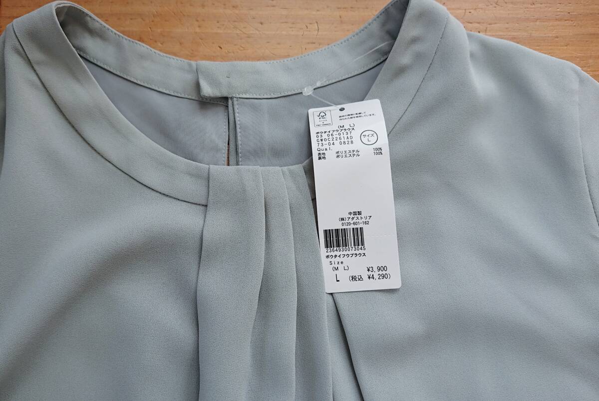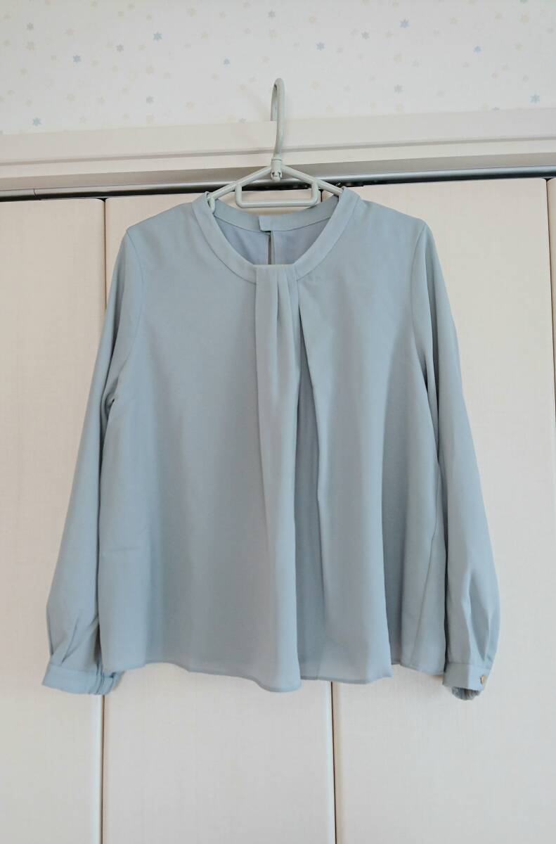 グローバルワーク★ボウタイ風ブラウス・ブルーグレーL★タグ付き