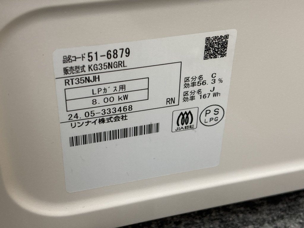 ◎【通電確認未】Rinnai リンナイ ガスコンロ KG35NGRL RT35NJH 2024年製 LPガス用 TW190604