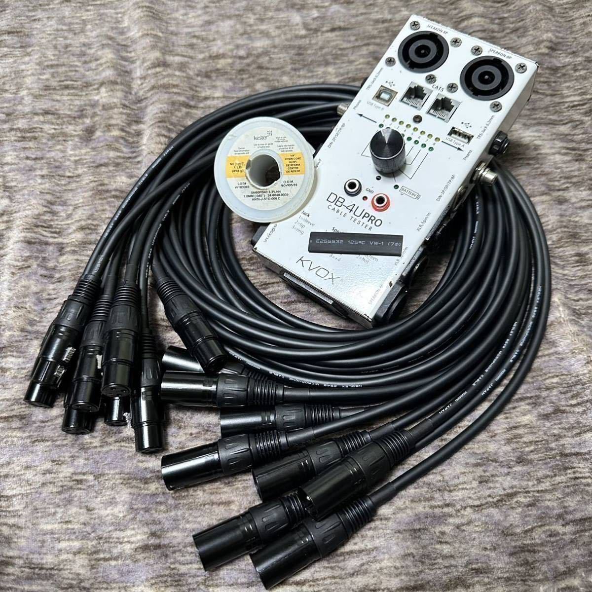 2549は柔らかく取り回しの良いケーブルで、音質も2534と比べ個人的には澄んだ音の印象があり、マルチボックスからミキサーへの立ち上げケーブルやミキサーからアウトボードへのインサートケーブルなどとして利用する際にとても重宝すると思い作成いたしました。