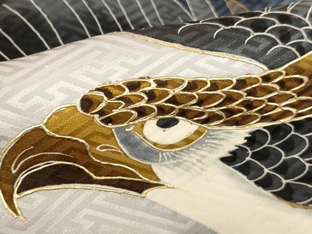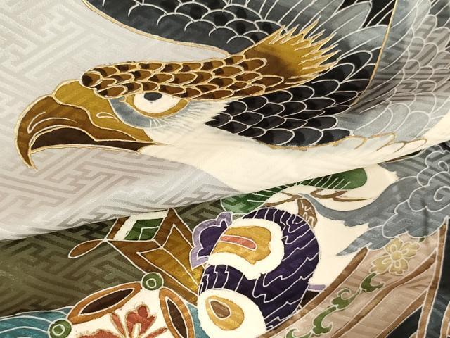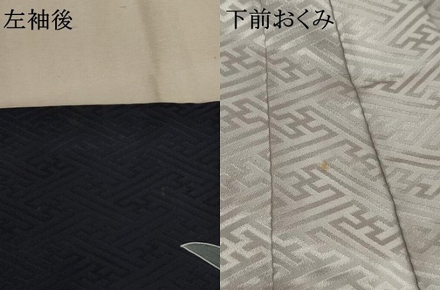 | 着物【正絹・五つ紋】の状態は接写画像のように左袖後・下前おくみに汚れがございますが その他特に目立ったシミ汚れなどもなく大変良い状態です。 大変上質な逸品になります。 お安く出品致しますので、是非この機会にいかがでしょうか?
