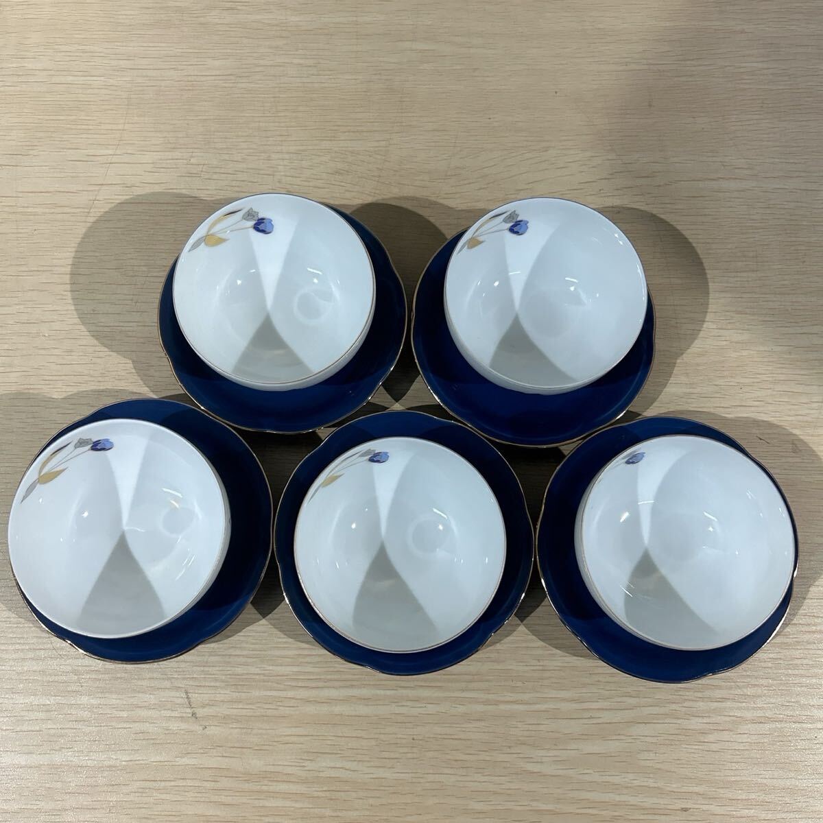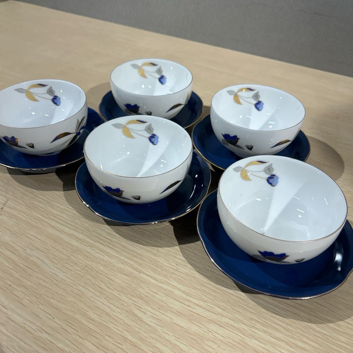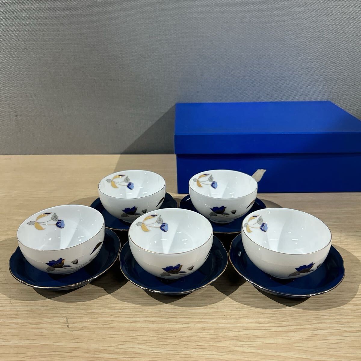 【未使用/保管品】セラミック藍 青藍窯 かいどう茶托付煎茶揃 和食器 湯呑み 茶托 5客揃