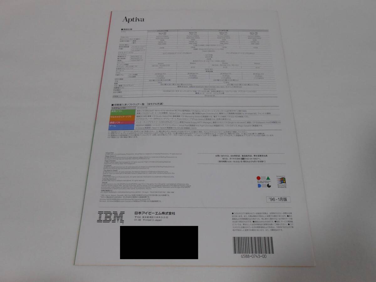 カタログ IBM Aptiva デスクトップコンピューター PC パソコン 1996年1月 Aptiva560 770 775 785 日本アイ・ビー・エム株式会社