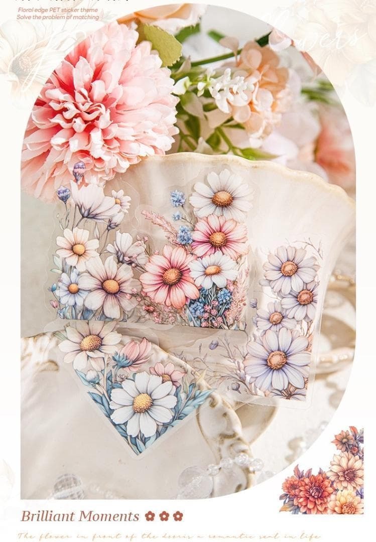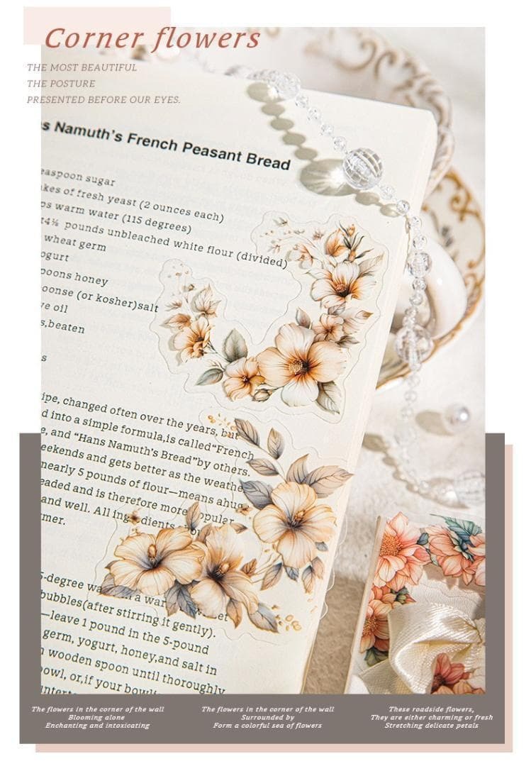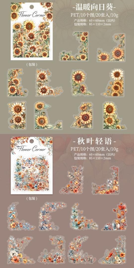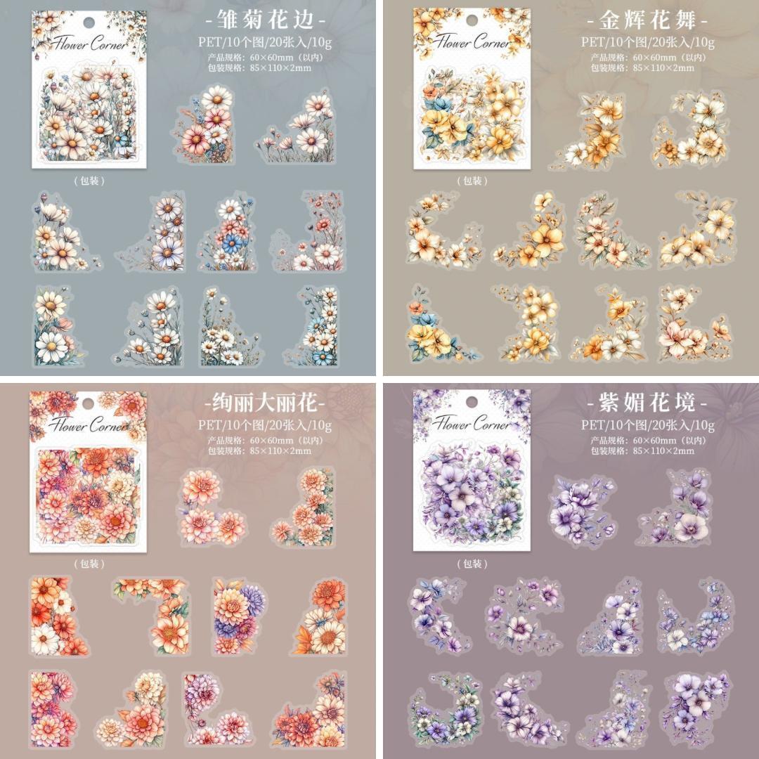 花柄デザインの角飾り風PET素材ステッカーシール♪