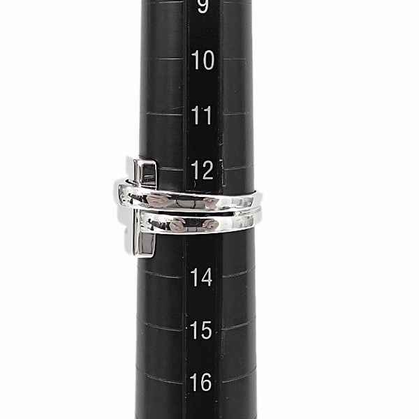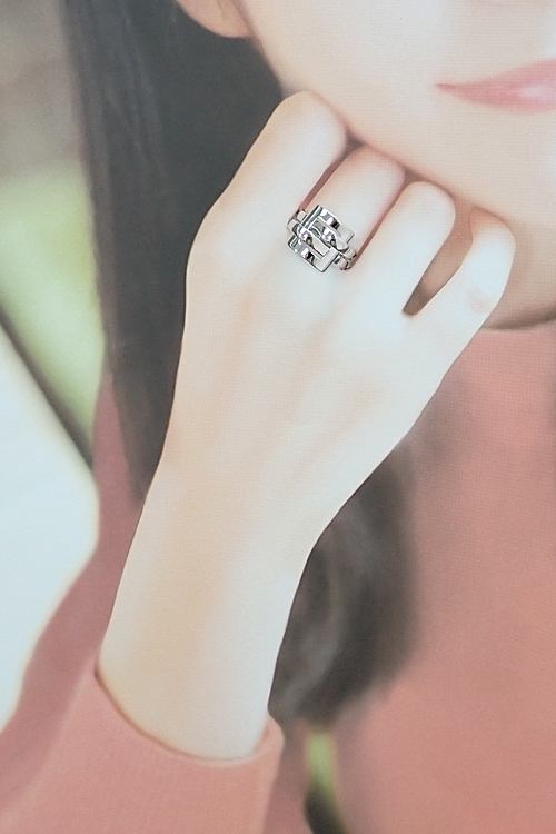 コメントブシュロンの、スクエアに2本のラインが交差したデザインが印象的な、デシュネシリーズのリングです。シンプルながら存在感のあるお品です。