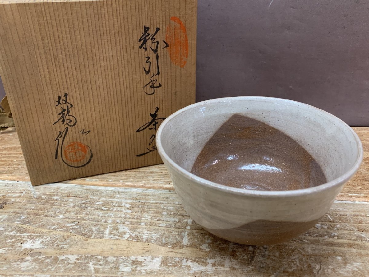 【YB-2694】未使用 水野双鶴 作 粉引手茶碗 直径約12.5cm 陶器 茶道具 共箱 東京引取可【千円市場】