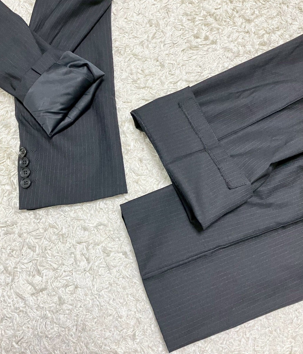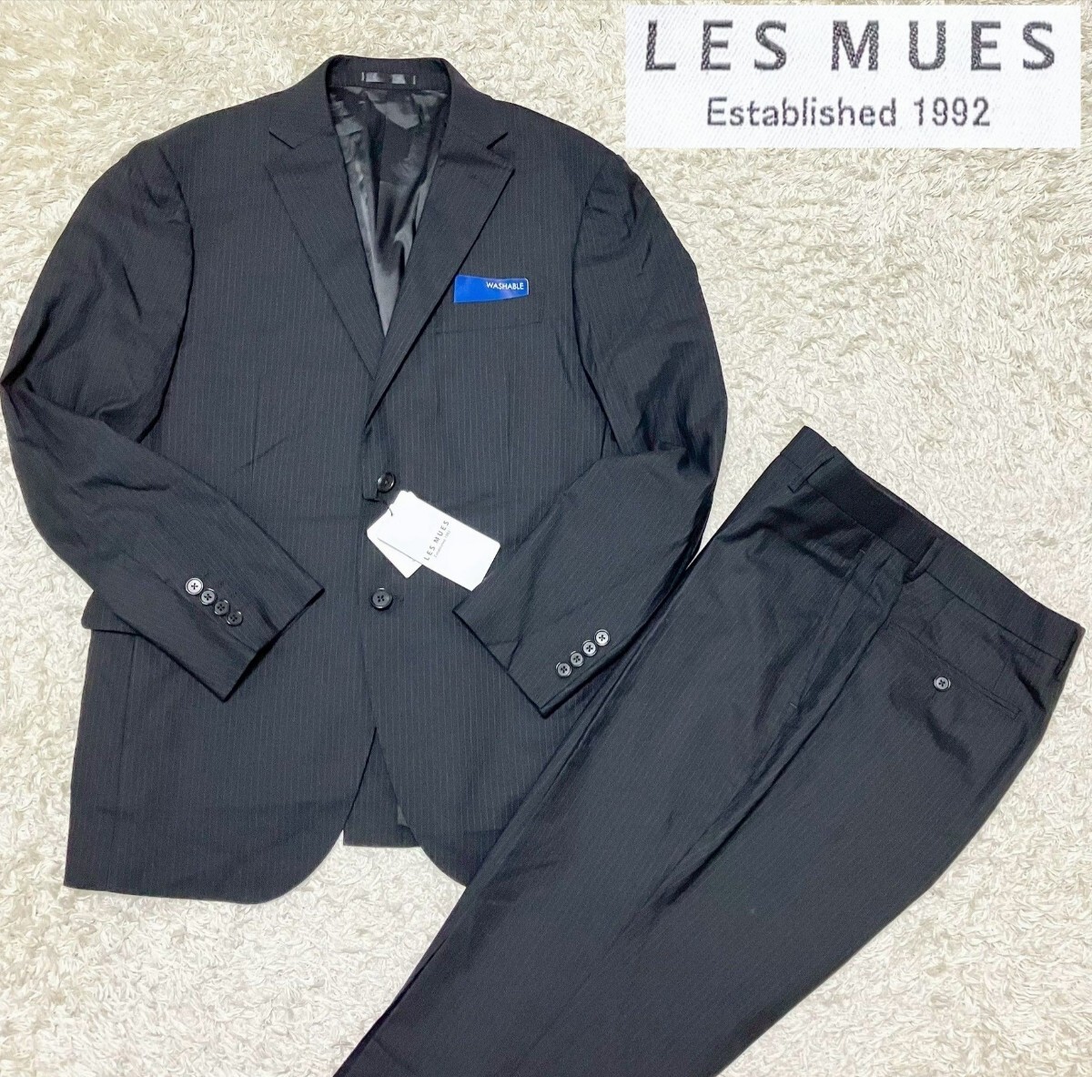 【未使用★】サイズAB5 LES MUES ストレッチ セットアップスーツ 上下セット●黒ストライプ☆レミュー (10)