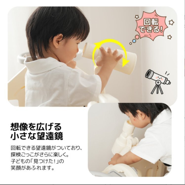 • ◎07【ぐるっと動かせる望遠鏡】回転できる望遠鏡がついており、探検ごっこがさらに楽しく。子どもの「見つけた!」の笑顔があふれます。