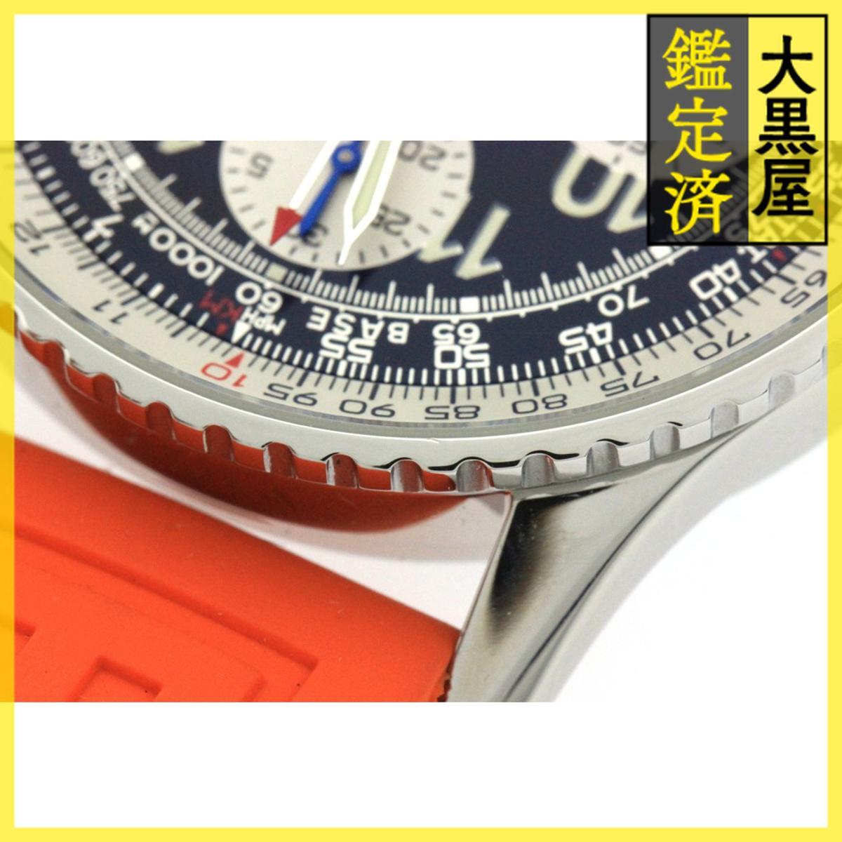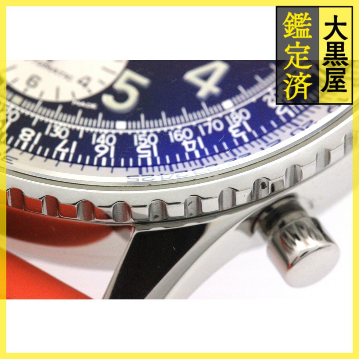 | 詳細 | 【商品コード】 2147300413746 【サイズ】 ケース径:約41mm 腕周り:内径最大約21cm 【付属品】 箱・保証書(未記入)・販売証明書(2000年5月並行品) 【保証】 御購入日より弊社6ヵ月保証開始 税抜50,000円未満は保証対象外 ムーブメント自然故障応対のみ クオーツ時計の電池自然切れは6ヶ月以内で交換応対 破損・水没・磁気帯び等の外的要因は対象外 日本国内販売品のみ対象 【修理履歴】 2025年10月に弊社提携修理工房にてOHと仕上げ済み。 【状態】 《風防》 ガラス表面に多少コーティング傷、5時方向ガラス縁に少し欠け傷が御座います。 《文字盤》 針表面に少し小傷が御座います。 《ベゼル》 ベゼル縁に少し凹み傷が御座います。 《ケース》 リューズとクロノグラフボタンに多少打痕小傷が御座います。 《ラグ》 5時と7時方向ラグ表面に擦れ線傷が御座います。 《裏蓋》 裏蓋表面に少し打痕凹みが御座います。 《ブレスレット》 後着け純正ラバーベルトに少し着用痕跡と汚れが御座います。 《バックル》 バックル表面と裏面に多少小傷と開け閉め痕跡が御座います。 【注意】 各出品サイトによって掲載される写真の枚数制限が御座いますので、詳しい状態についてご気軽にお問い合わせください。 此方の商品は店頭展示商品の為、ネット掲載状態から変わる場合が御座います。ご注文後、店舗から状態確認についてご連絡する場合が御座います。詳細に関して、お気軽にお問い合わせ下さいませ。 又、細心の注意を払って御取扱い致しておりますが、「中古品」の為、商品確保時に、動作不良やキズ等の不備により、弊社より確保保留の御案内及び、キャンセルとさせて頂く場合が御座います。 ご理解の上ご購入頂きますようお願い致します。 ~・~・~・~・~・~・~・~・~・~・~・~・ 海外のお客様へ 基本情報内の「年」は保証書に記載されている購入年を指しています。 販売価格に輸入税、関税、消費税、配送料、送金手数料等は含まれておりません。 全て別途でお客様負担となります。予め御理解頂いた上で、御注文をお願い致します。 配送はDHLにて発送しております。配送業者の指定は承りかねます。 購入後の商品は安全かつ迅速にお届けします。 注意 1 表示価格は税抜価格(免税価格)です。 発送時に低い金額で申告して発送する事はできません。そのような質問はお辞めください。 輸入税は表示価格に含まれていません、すべての支払われる税は買い手の責任です。 2 わに革及びトカゲ革等のエキゾチックレザーベルトはワシントン条約による輸出制限のため海外発送できません。 ベルトは除いての発送となります。 3 ホテルなどの宿泊先への発送は出来ません。 4 通関された貨物には、あらゆる税金が課されます。掛かる税金は全てお客様のご負担となります。予め御了承下さいませ。 理由を問わず、お客様が荷物を受取をされずに弊社へ戻ってきた場合、返送に掛かった配送料等は全てお客様に請求させて頂きます。 | ||