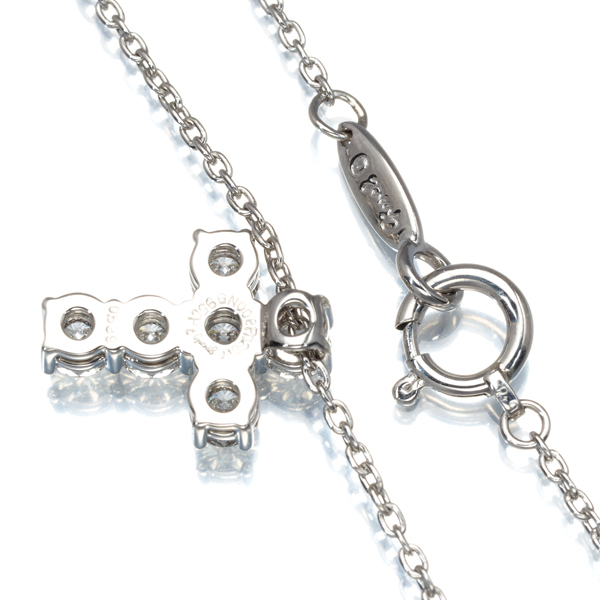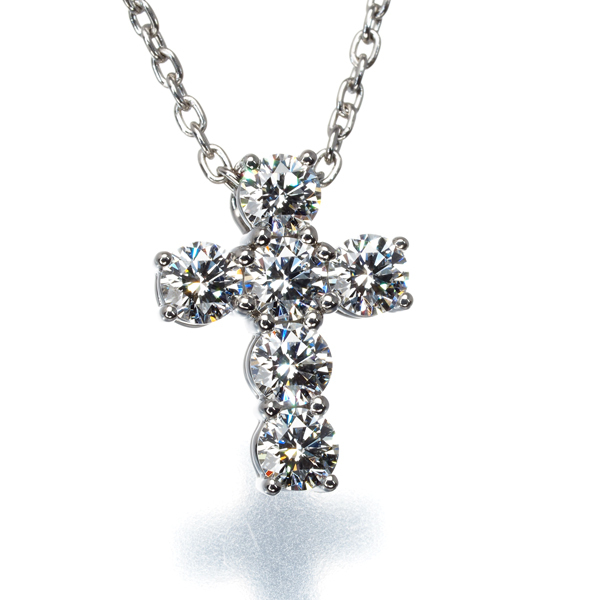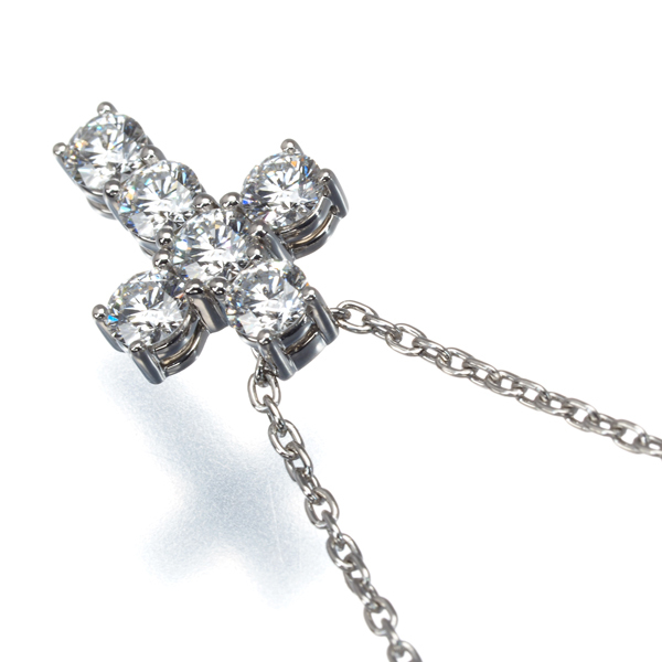 細やかな技法で日本の美を表現した作品が世界的な人気を博す、芦屋発の高級ジュエリーブランド ギメル。こちらは、カット、カラーそしてクラリティ全てが極上品質のダイヤモンドを並べたクロスネックレスです。 |