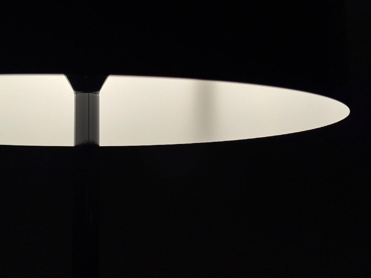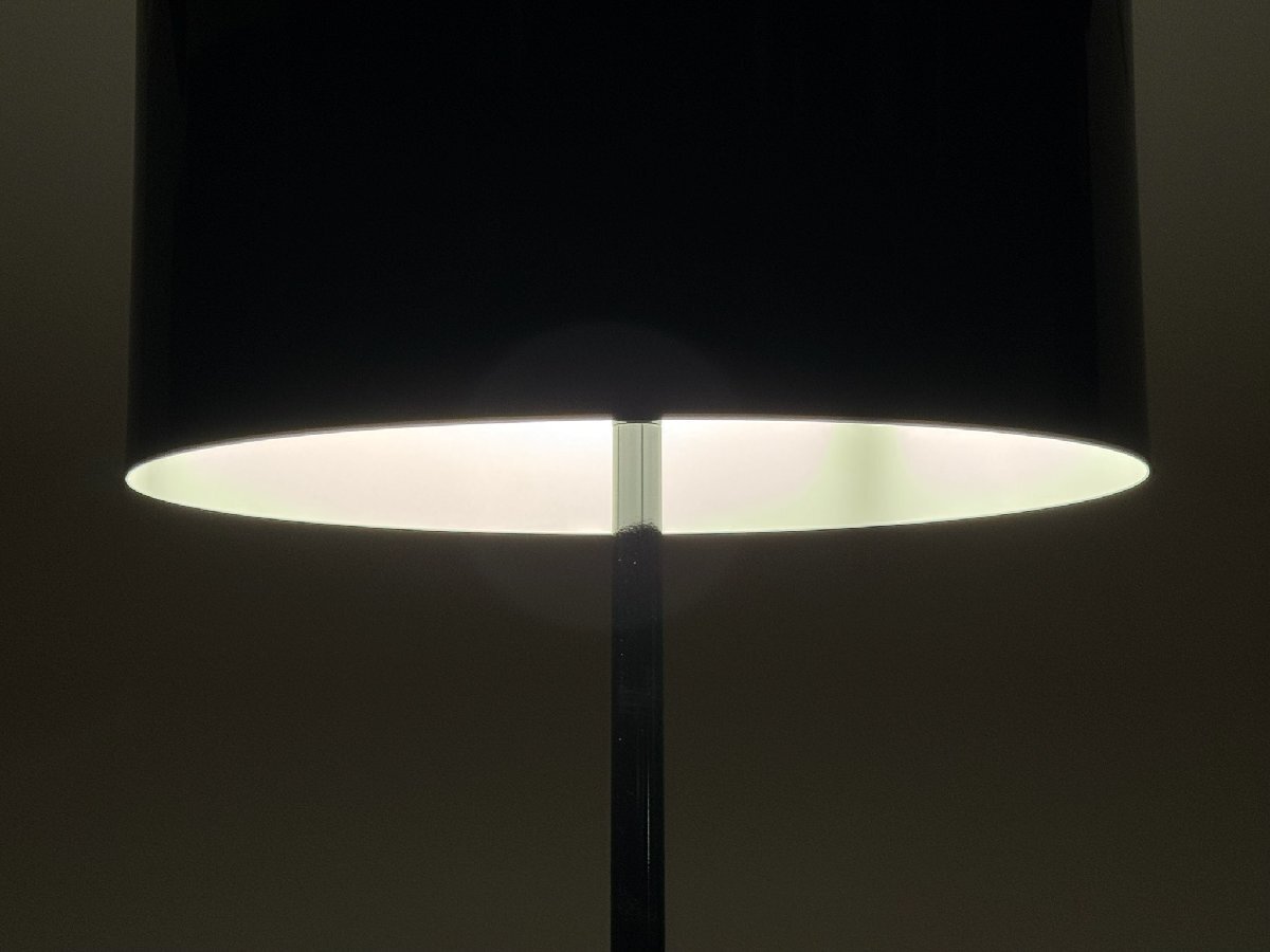 アルミニウム加工の屈指の名作として、流線的な曲線の美しいベースがそのまま支柱と連なって無灯火仕様のノンテーパード形状のシェードに組み上がり、静かな光で上下を照らす、ミニマリズムデザインの代表作として知られる名作スタンドライト。FLOS より。