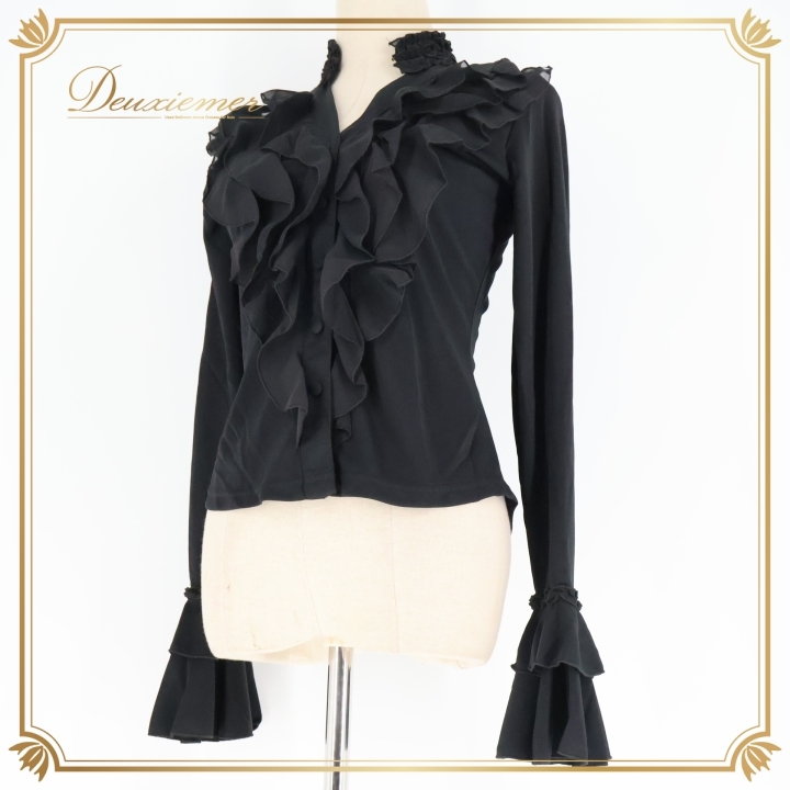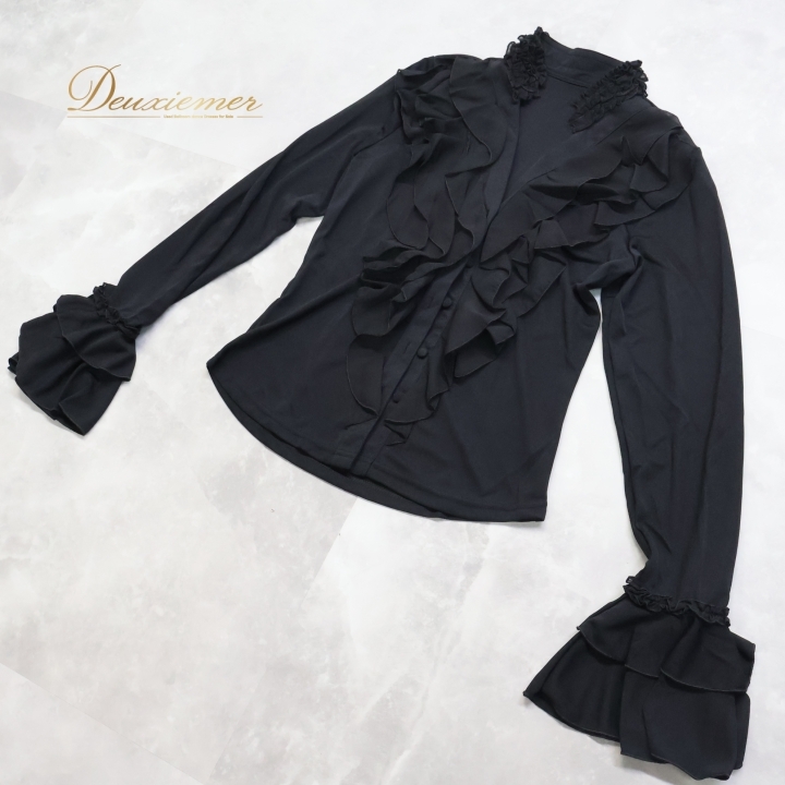 | 【商品名】フラメンコ 衣装 トップス ブラウス 【サイズ】表記無し 平置き実測:総丈約56cm(裾~首部まで)、肩幅約35cm、身幅約42cm、ウエスト約35cm、袖長さ約63cm ※実測の為、多少の誤差はご了承ください 【仕様】 ・正面ボタン仕様 ・伸縮性無し ・肩パッド無し ・胸パッド無し 【品質表示】 ポリエステル95% ポリウレタン5% ------------------------------------ 【ポイント】 ▽フリフリがかわいいデザイン ▽合わせやすい真っ黒ブラウス ------------------------------------ 【撮影時使用トルソー】 種 類:女性用トルソー7号 サイズ:肩幅約37cm、バスト約83cm、ウエスト約60cm、ヒップ約81cm |