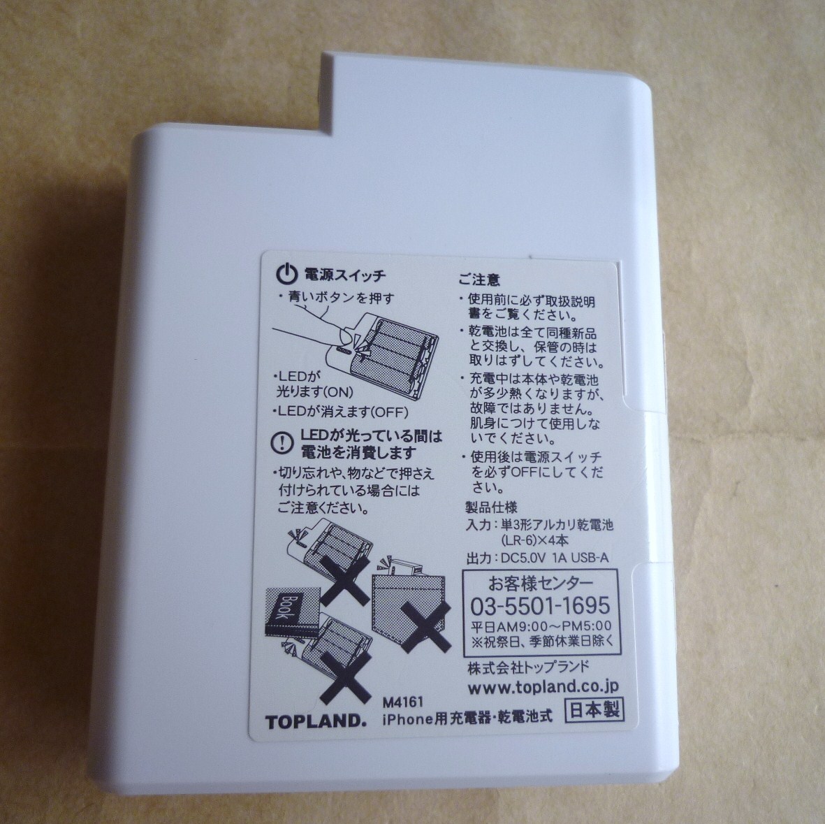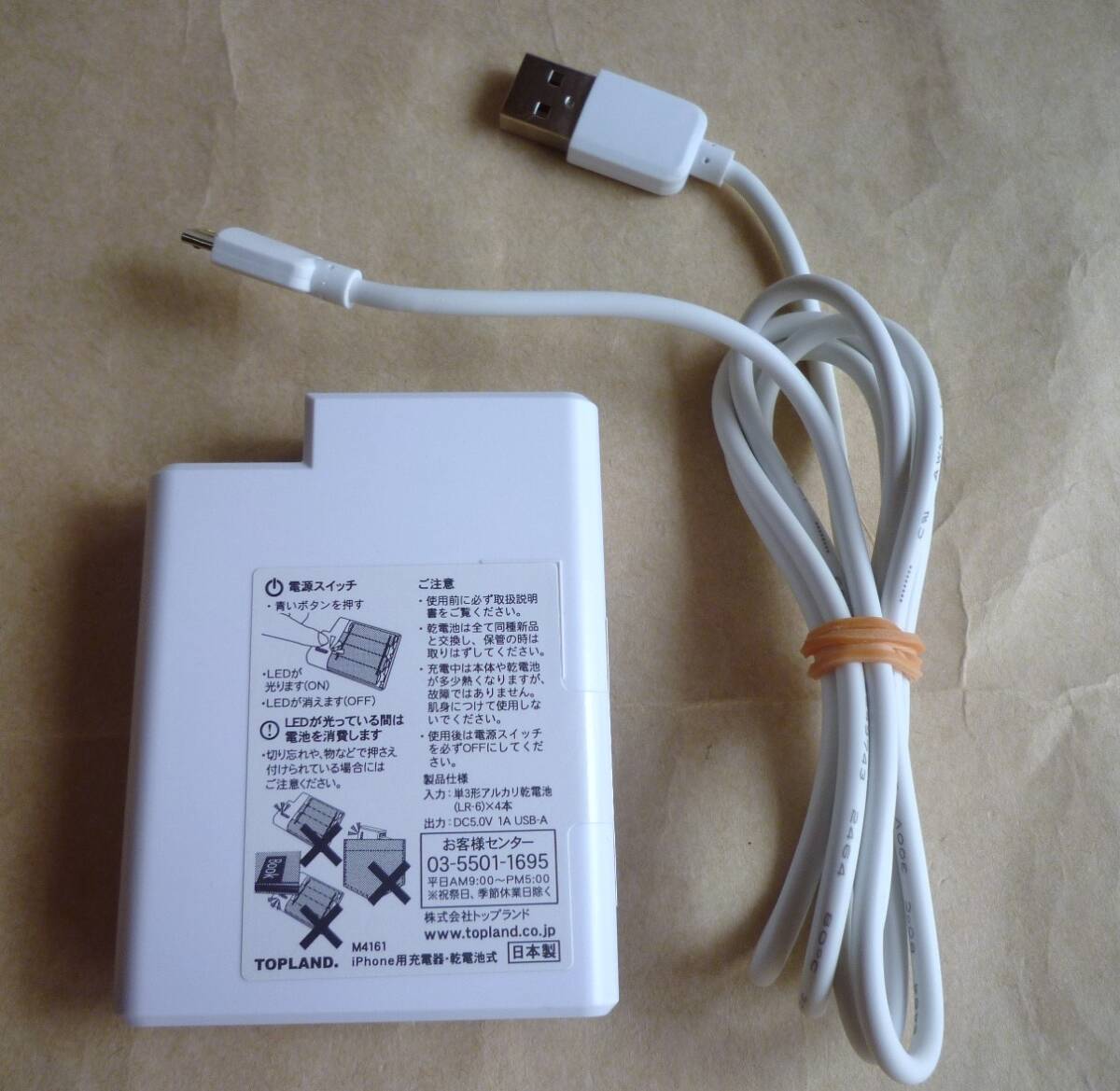 TOPLAND トップランド M4161 スマホ充電器 乾電池 単3を4本 乾電池式充電器 充電器 充電 電池交換式 iPhone Andriod スマートフォン用
