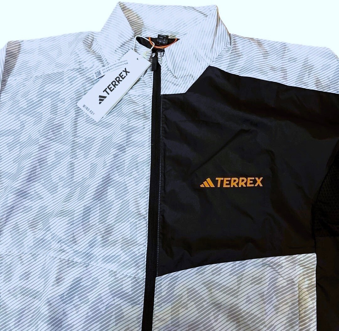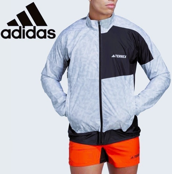 【adidas TERREX】★防風撥水・超軽量・再帰反射・トレイルランニング用★WIND.RDYジャケット【●新品未着用タグ付き●】品番:HZ1299、定価:13,200円。表記サイズ:L、チェスト:93~96cm、素材:ポリエステル100%。