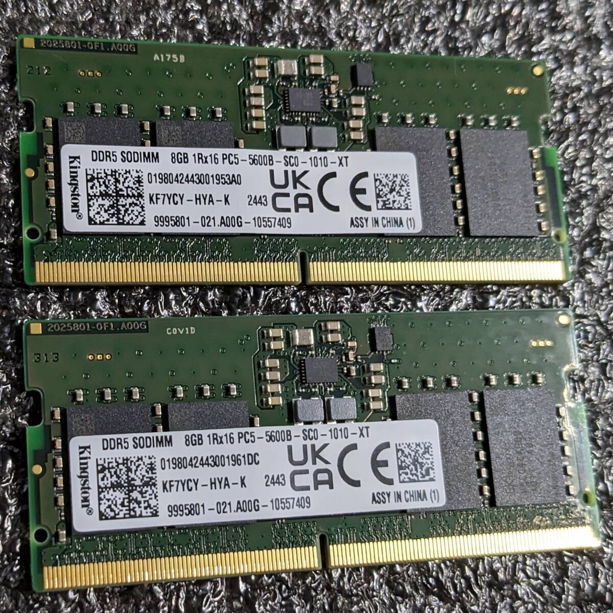 キングストンのDDR5 SODIMM、8GB2枚組合計16GBのセットです。
