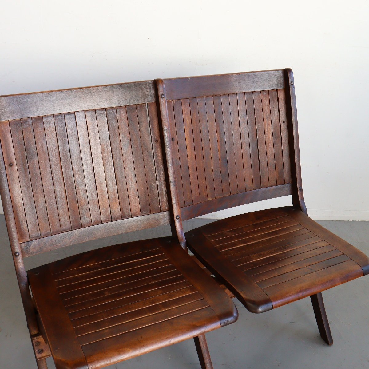 | 商品説明 explanation | 推定1930年から1940年代の木製2シーターベンチです。 映画館や教会などでよく使用されていました。 意外と数が少ない2シーターで、折り畳みできる為、移動も容易です ご自宅のインテリアや店舗什器などにいかがでしょうか。 |
