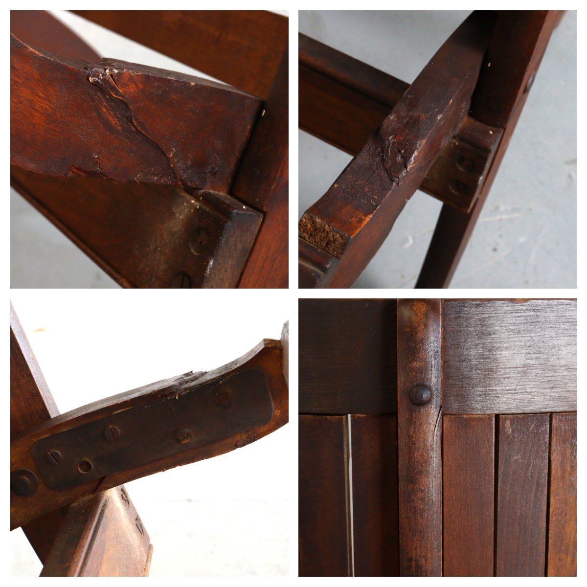 | コンディション condition | また、多少の揺れ、サビ、座面に色あせ・取れない汚れ、小さなカケ、取れない汚れなど、経年による劣化があります。 ※亀裂があり、当時行われた補強・修復の跡があります。(写真10枚目) 体重約70kgのスタッフが座って負荷をかけてみましたが影響はなく、しっかりと補強されておりご使用に支障はございません。 詳細は画像をご覧ください。 |