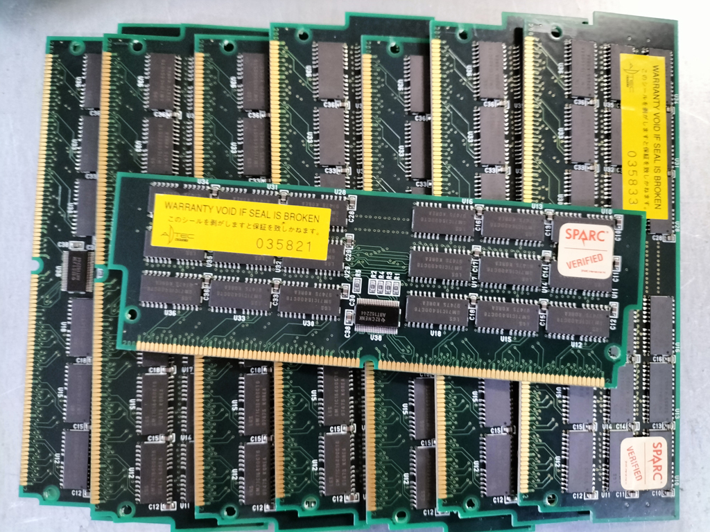 Sunのメモリは200pin SIMMと呼ばれるものです。8枚あります。