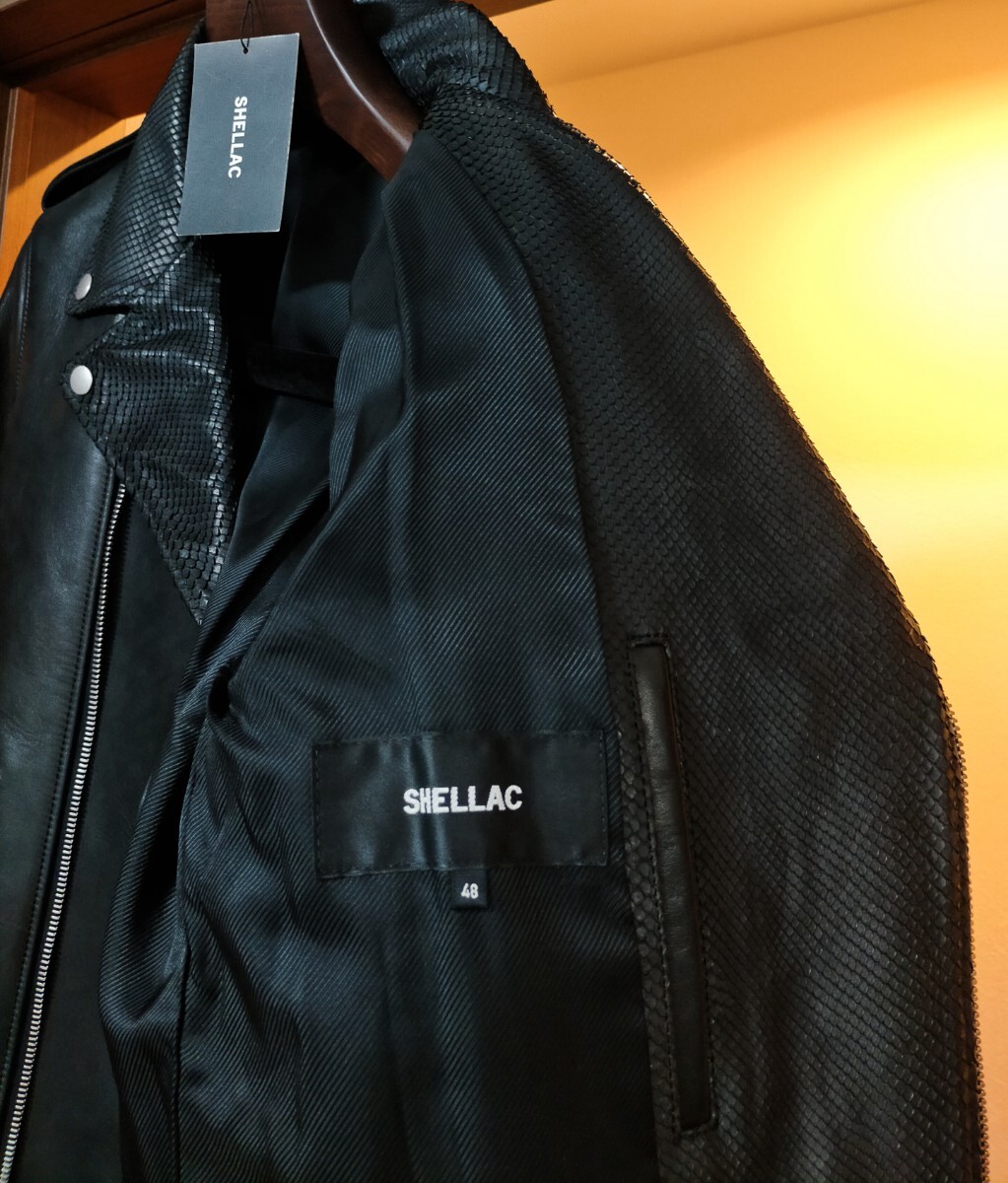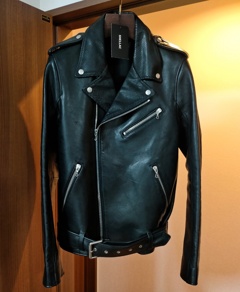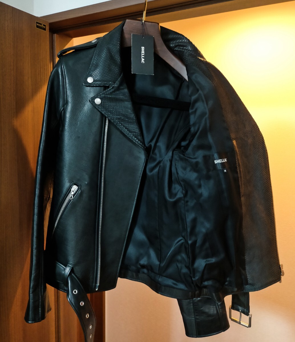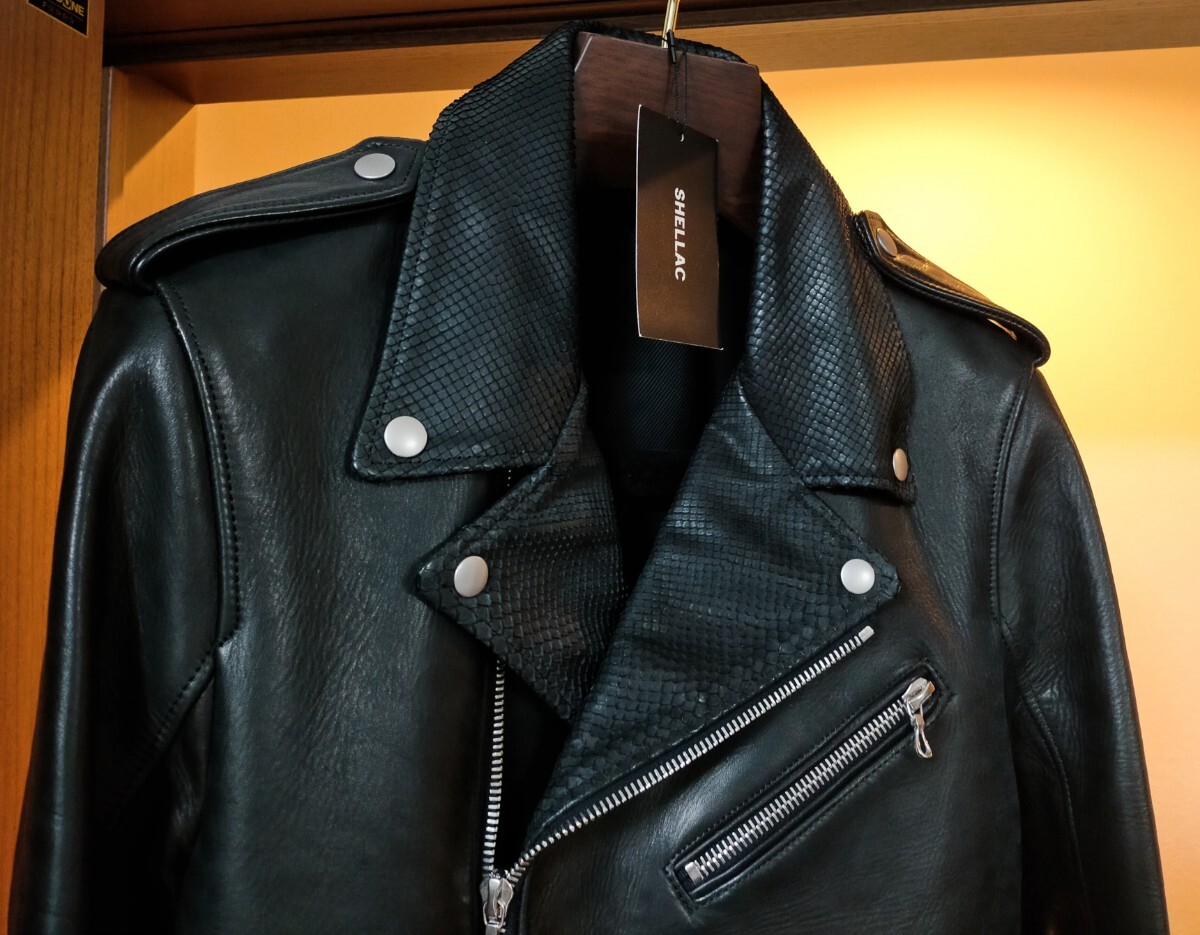 シェラックのホースレザー×パイソンレザーライダースジャケット(ブラック)です。