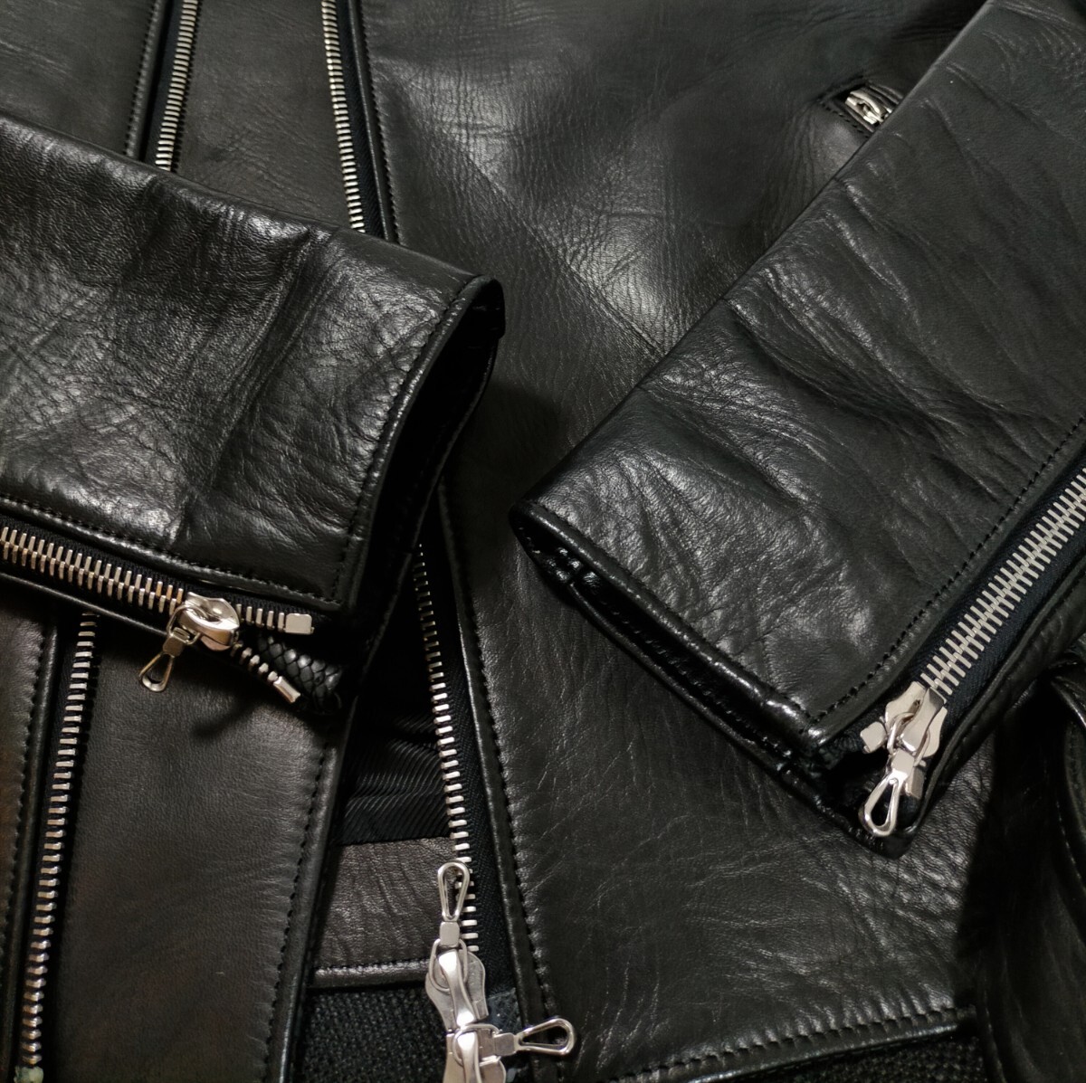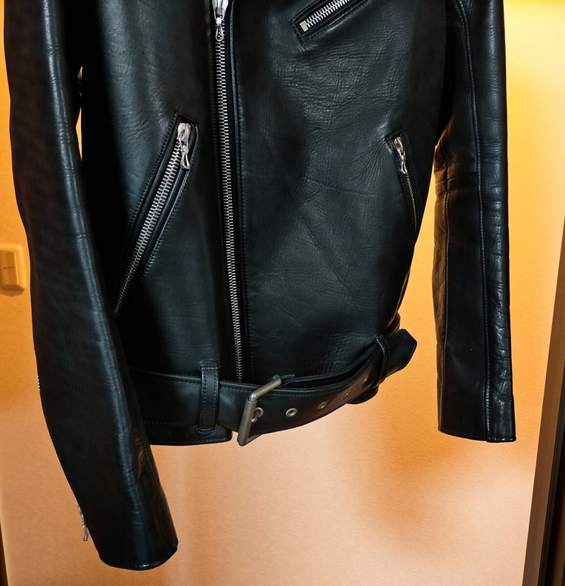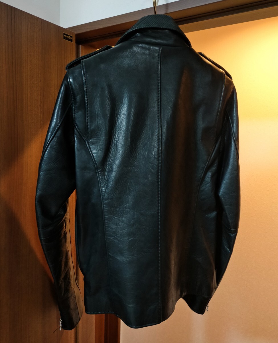 デザイン性の高いダブルライダースながら、シェラックらしいタイトなシルエットにより、スタイリッシュで色気のある雰囲気を醸しています。
