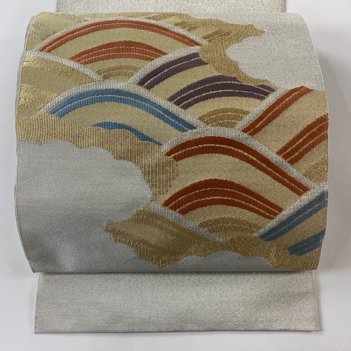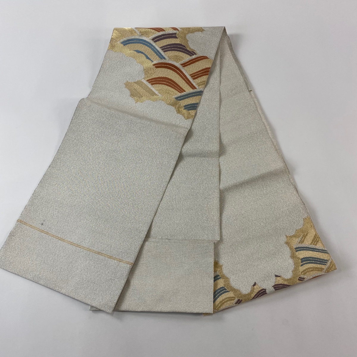 | 名古屋帯 優品 八寸名古屋帯 松葉仕立て 青海波 逆さ雲取り 金銀糸 銀色 正絹 【中古】 |