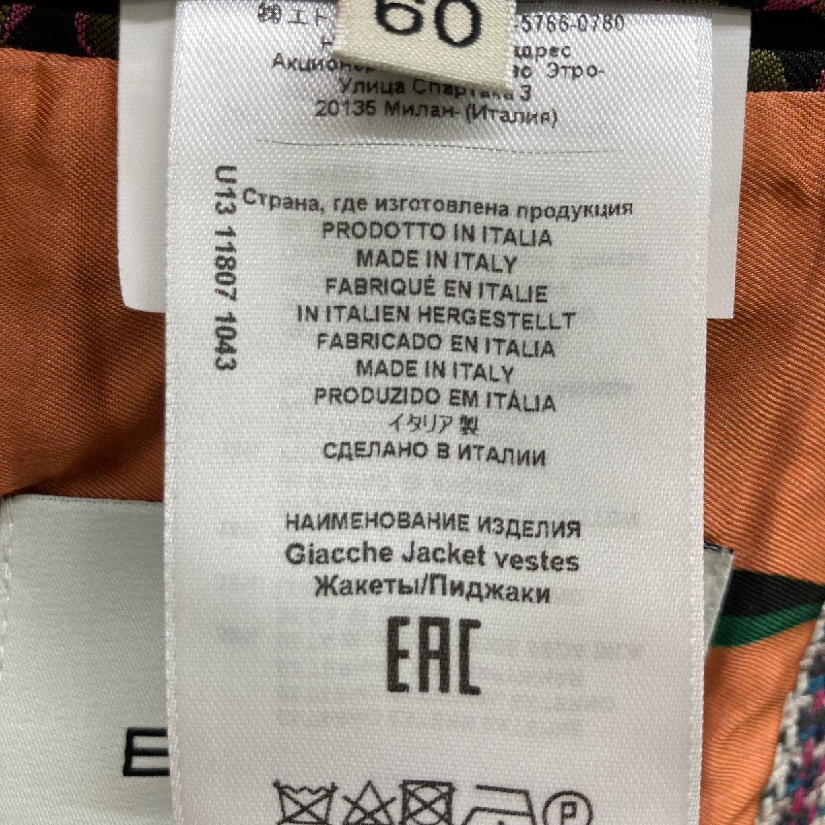 ETRO エトロ 22年製 ブラックパンサー裏地 ツイード2Bテーラードジャケット マルチカラー 60 ジャケット シルク メンズ 中古