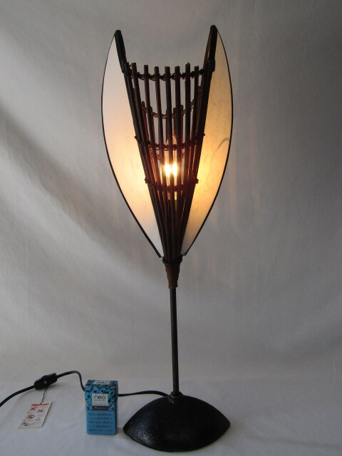 ◇アジアンライト 篝火風ライト テーブルライト 竹鉄製 点灯確認済 100V40W 1012-5◇