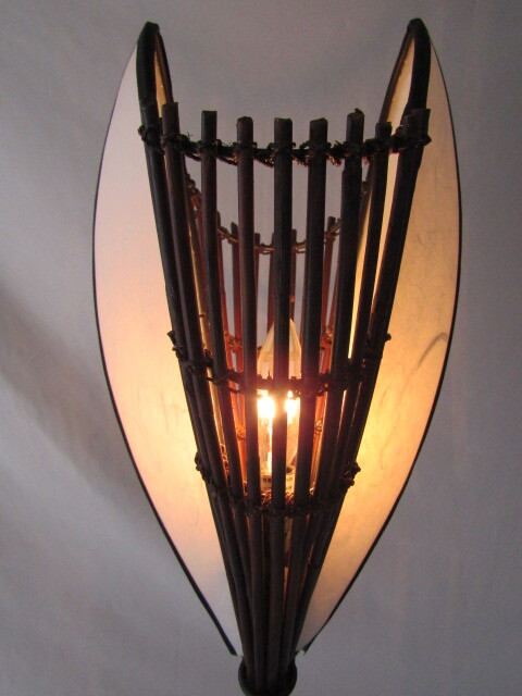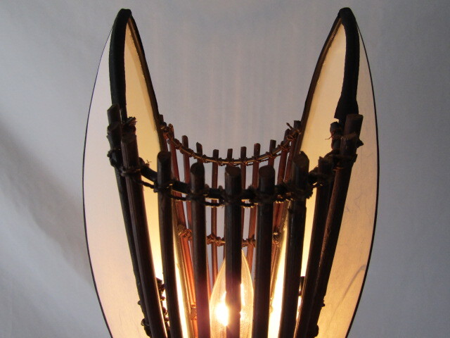 ◇アジアンライト 篝火風ライト 竹鉄製 点灯確認済 100V40W 1012-5◇