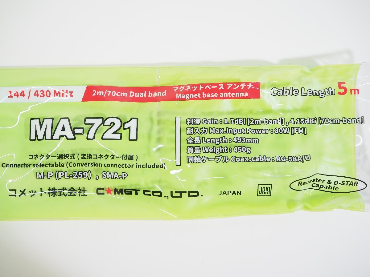| 商品名 | ☆813☆ COMET コメット マグネットベースアンテナ MA-721 144/430Mhz デュアルバンド | |