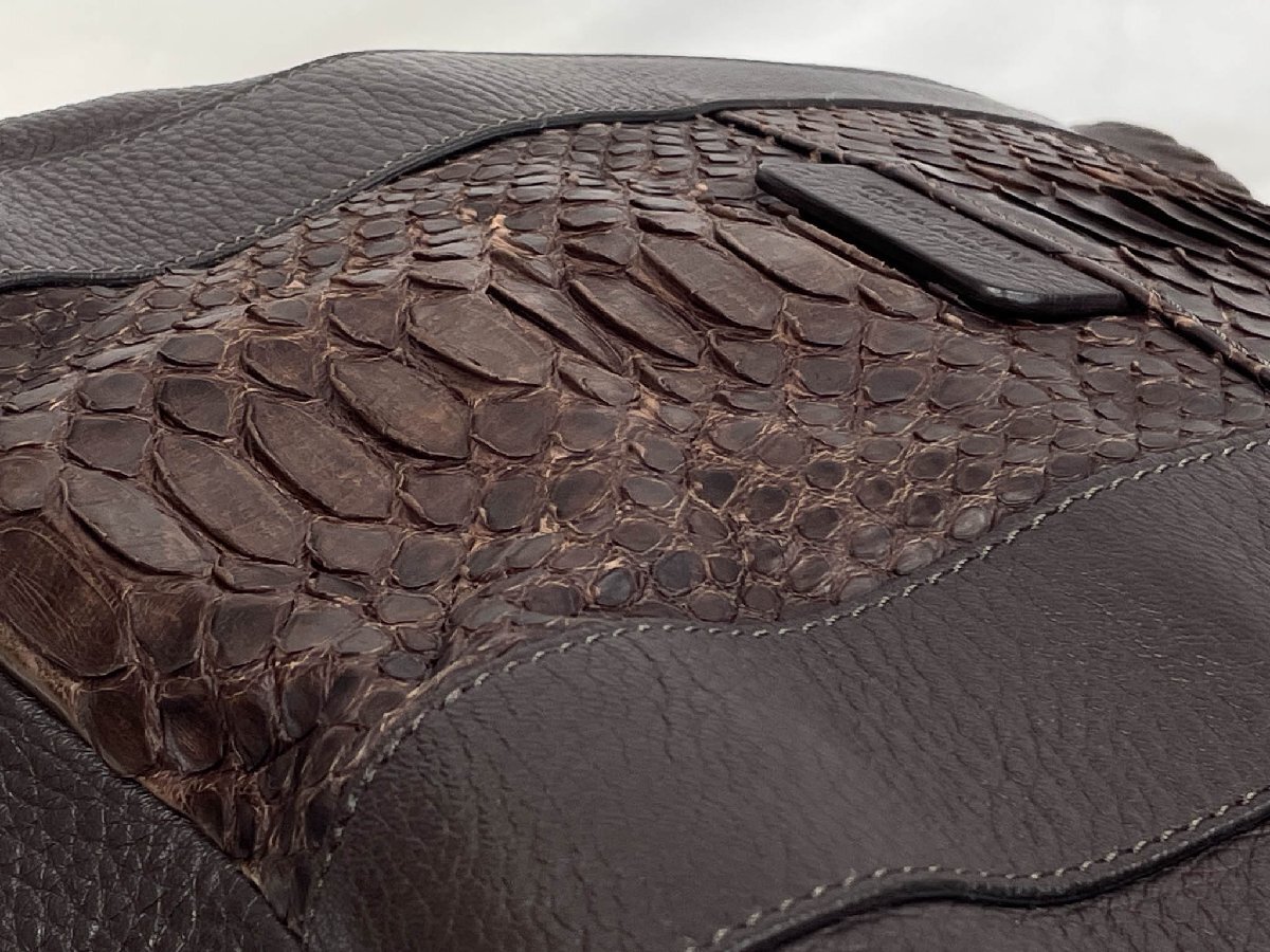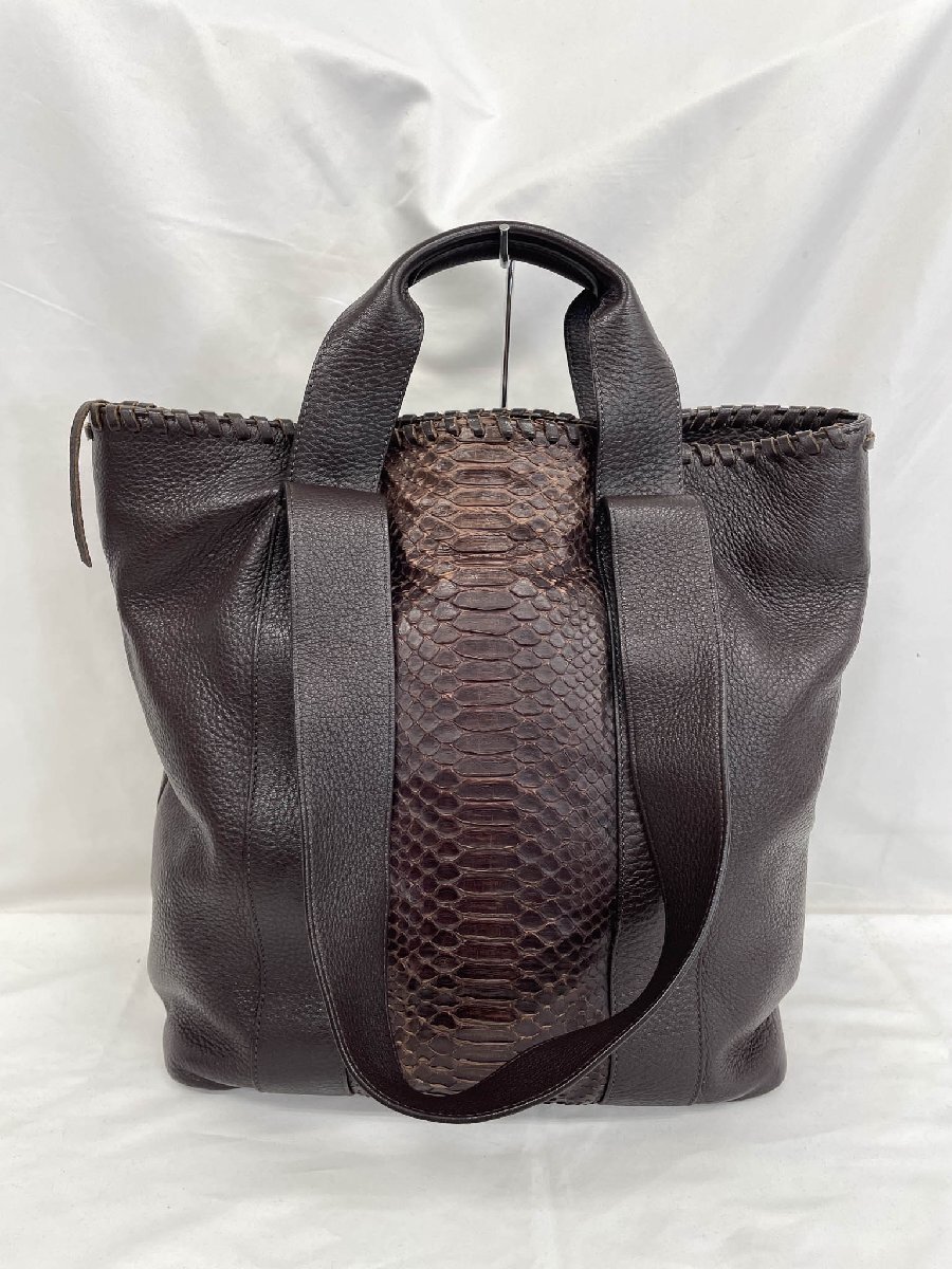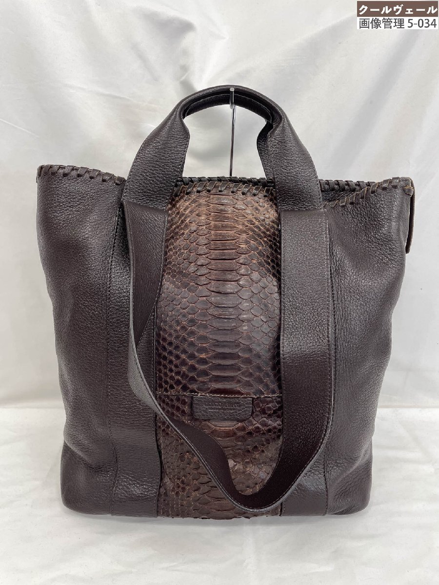 極美品 【ジョルジオアルマーニ GIORGIO ARMANI】 パイソン レザー トートバッグ (メンズ) ダークブラウン ◇5HT2949◇
