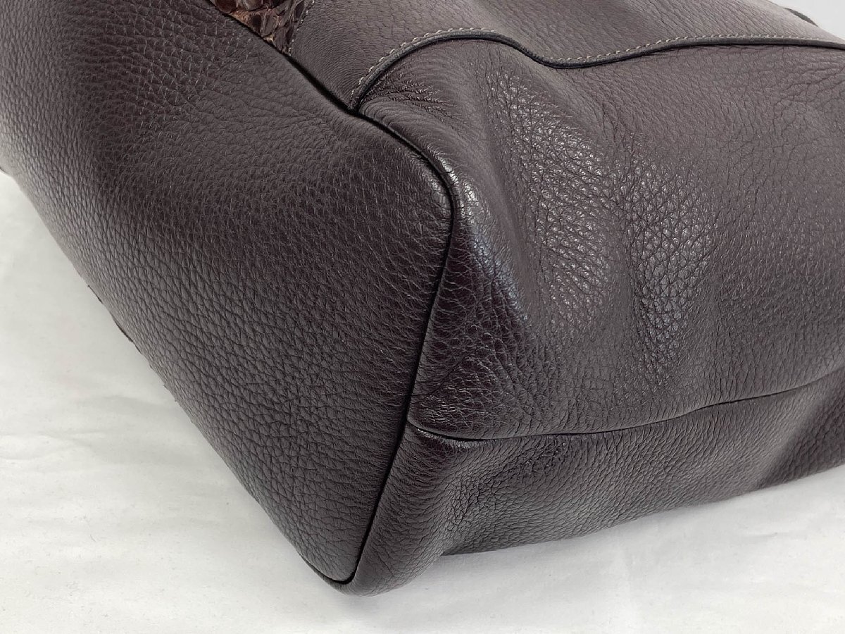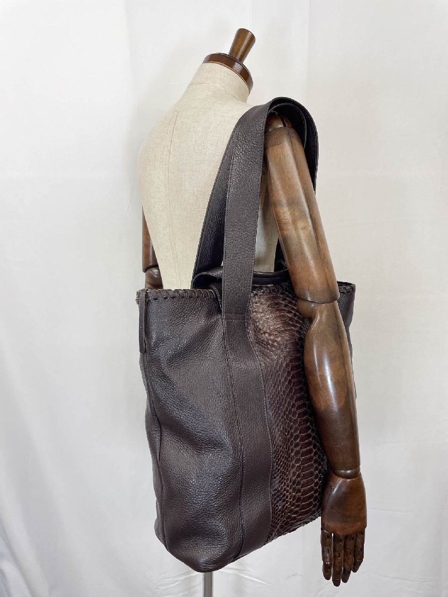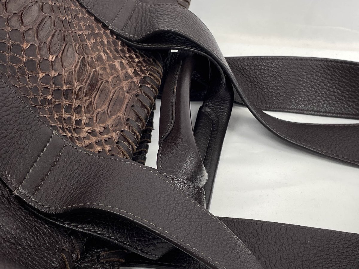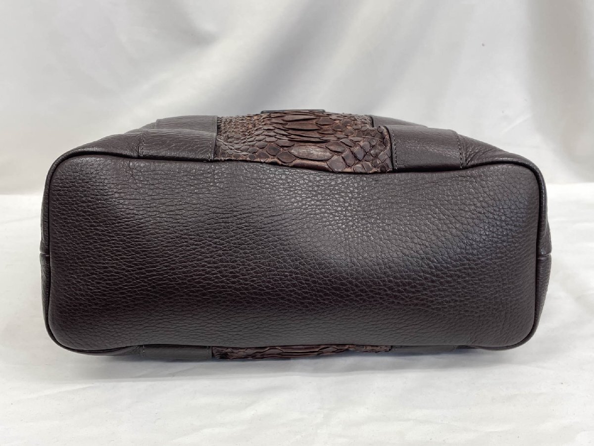 極美品 【ジョルジオアルマーニ GIORGIO ARMANI】 パイソン レザー トートバッグ (メンズ) ダークブラウン ◇5HT2949◇