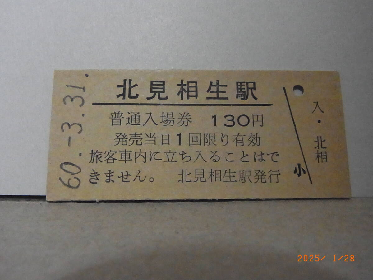●廃線前最終日● 国鉄 相生線 北見相生駅 130円普通入場券 昭和60.3.31 5352 ★送料無料★
