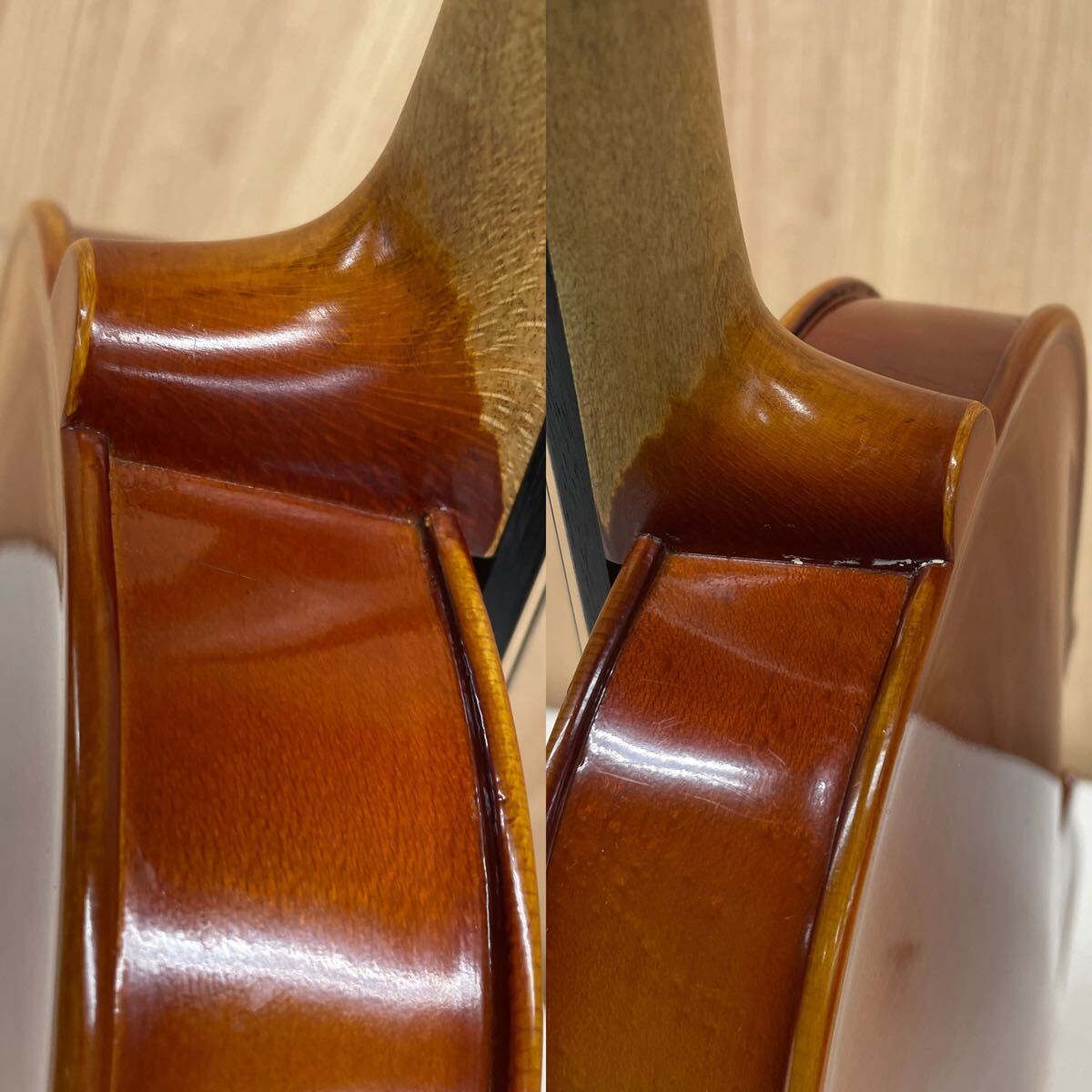 角の部分に削れたような傷が多くございます。ボディエンドの辺りや、ヘッドの先端の削れが目立ちます。