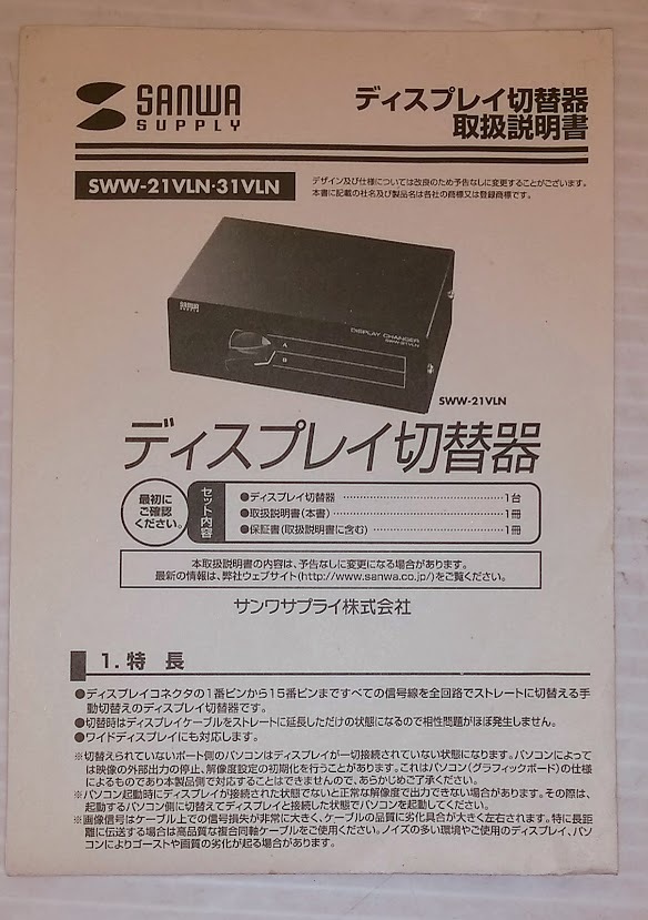 | ● サンワサプライ ディスプレイ切替器 ミニD-sub HD 15pin用 3回路 SWW-31VLN (未使用) | |